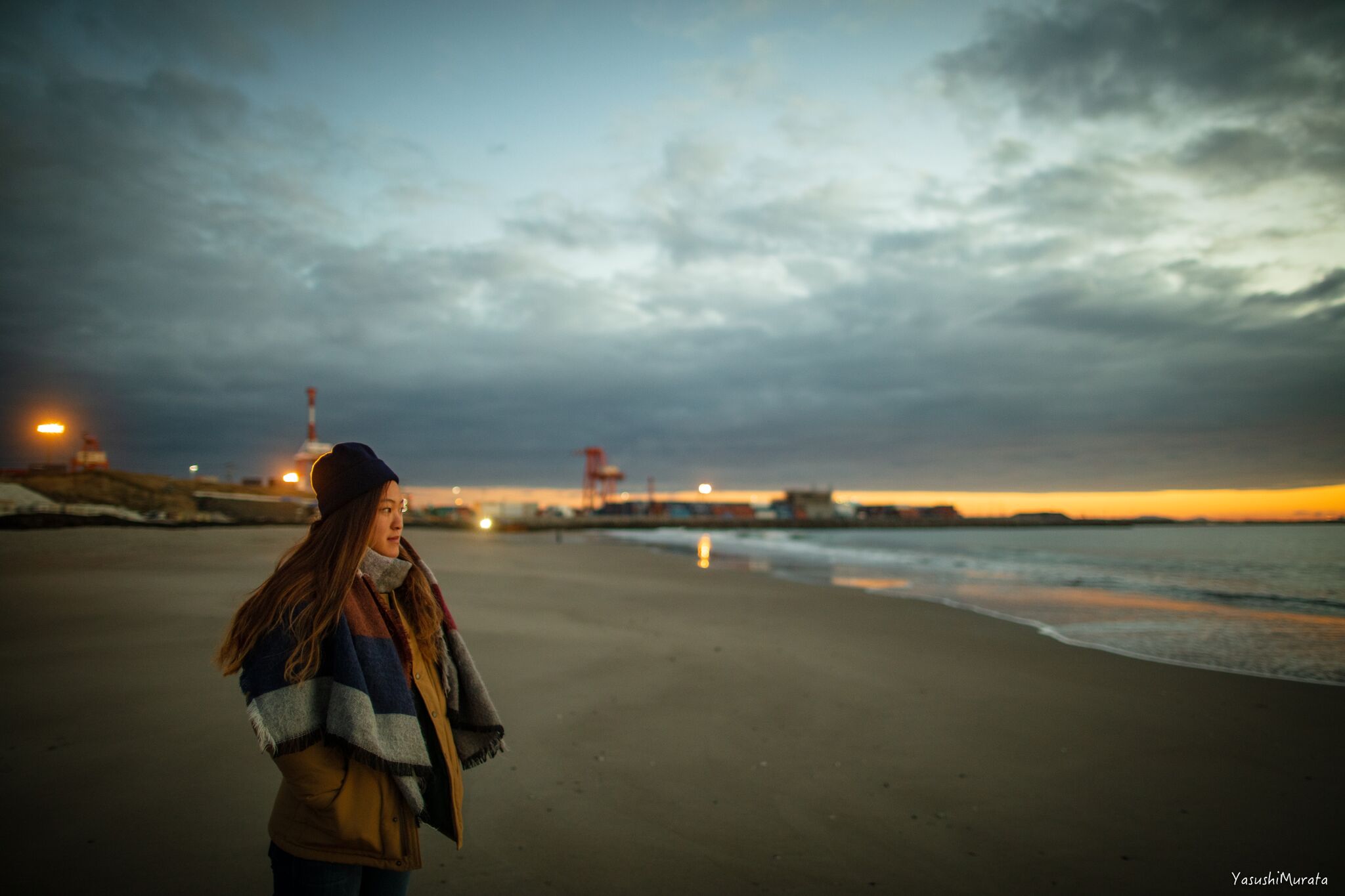 波はないが気持ちのいい晴天に恵まれた仙台新港。左から鈴木姫七、大澤伸幸の妹に当たる大澤宥南、西元エミリー。Himena Suzuki, Yuna Osawa, Emily Nishimoto.