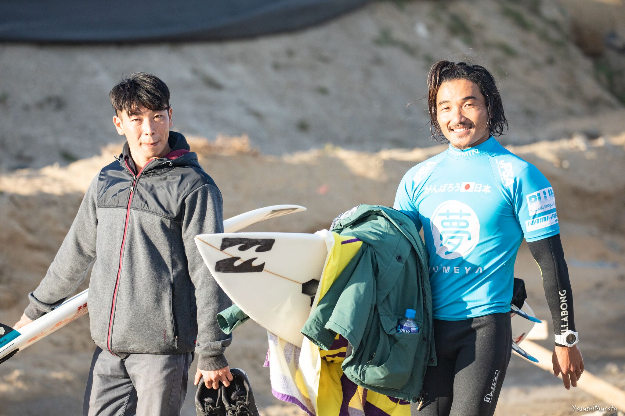 現在JPSAランキング1位の加藤嵐と2位の辻裕次郎。Bewetチームのチームメイトであり、年齢の差を超え、まるで兄弟のように仲が良く、ツアーも一緒に転戦しているこの2名が巻き起こす今シーズン最高級のドラマに注目が集まる。本日コンテストDAY2に行われた田原プロの残りのヒートでは、2名ともクォーターファイナルで敗退。仙台プロでの快進撃に期待したい!Above : Yujiro Tsuji. Below : Arashi Kato.