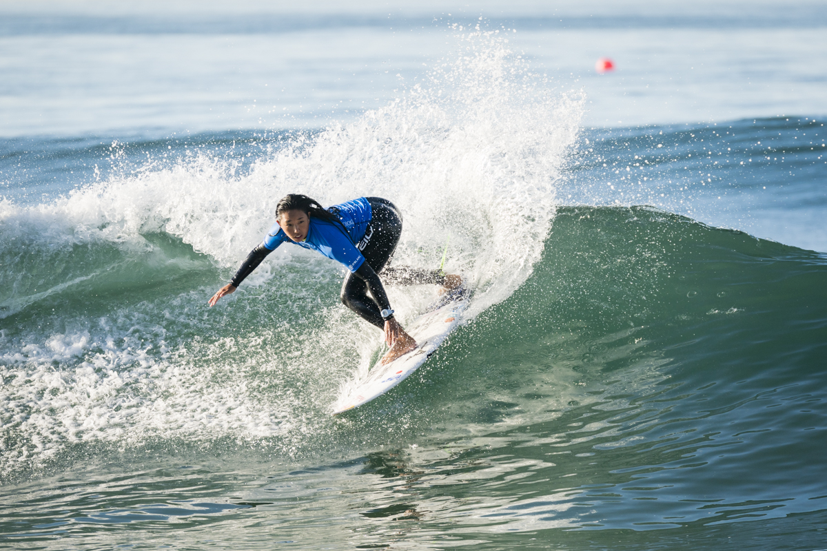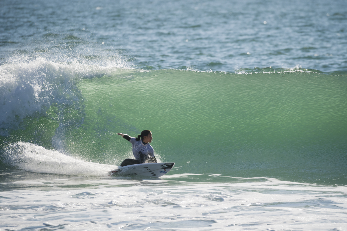 Girls U-18のリパチャージ・ラウンド 5のヒート2では最後の最後までハイスコアを狙い続け、2位でラウンドアップを果たしたが、迎えたリパチャージラウンド6ではプライオリティーを保持しながらも波を待ち過ぎてしまい、ようやく掴んだ波でもスコアを伸ばすことができず、惜しくもここで敗退となってしまった川合美乃里。今大会を16位でフィニッシュとなった。Minori Kawai.