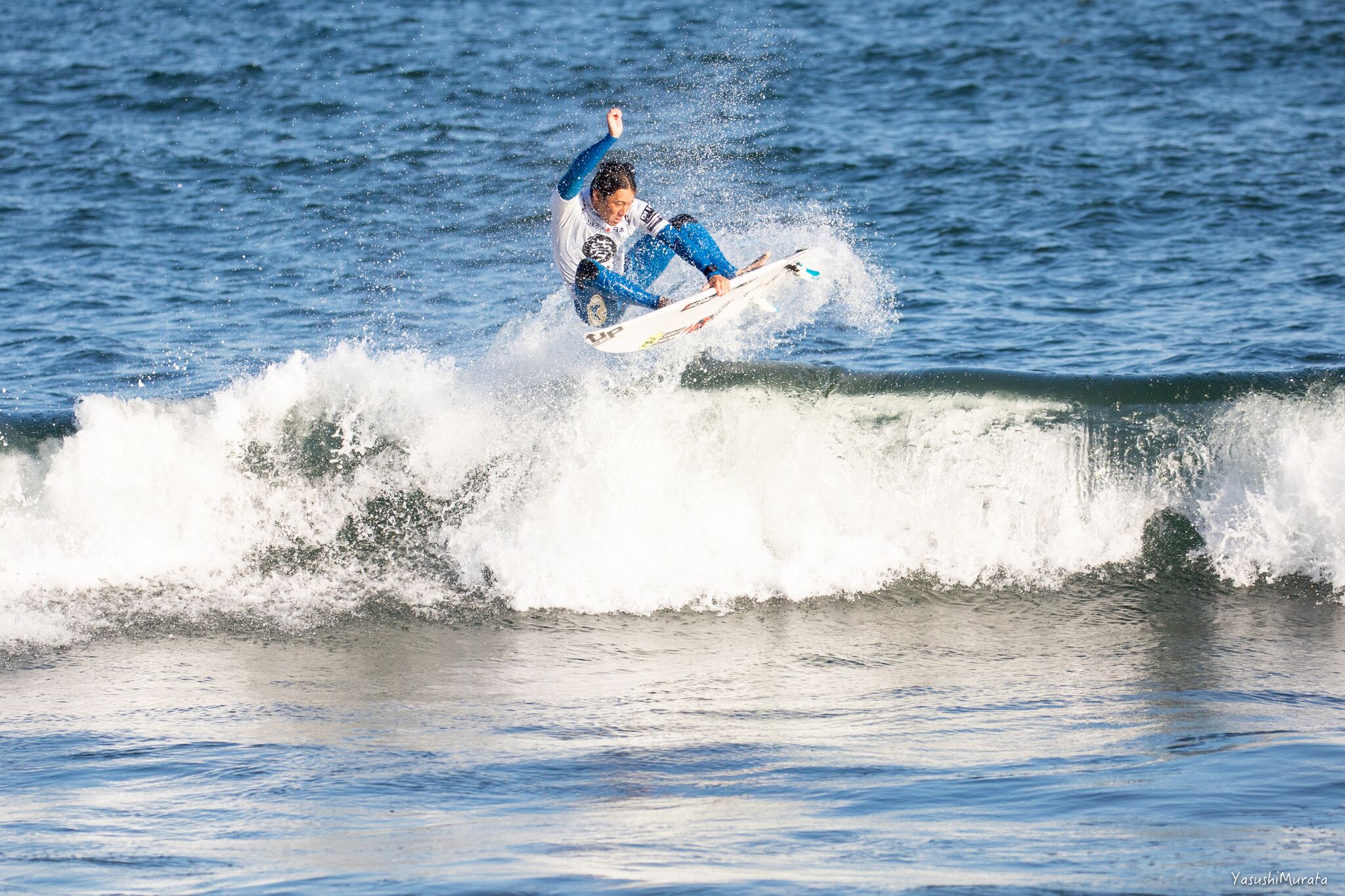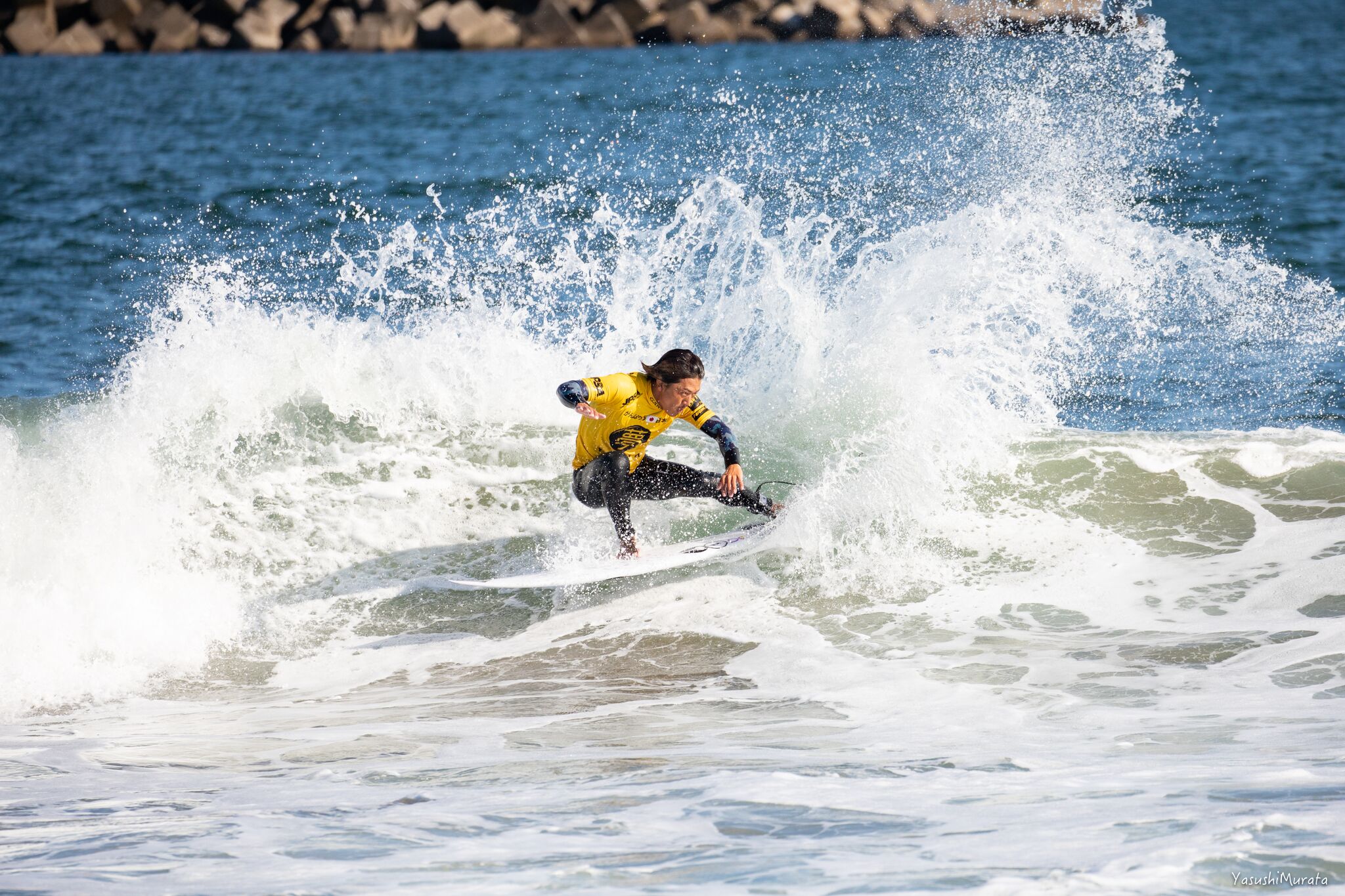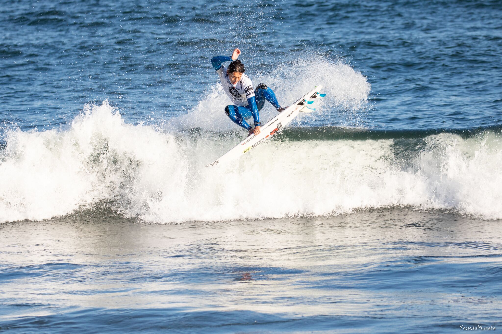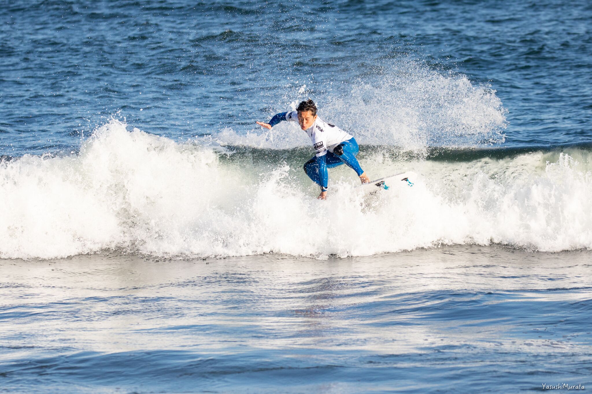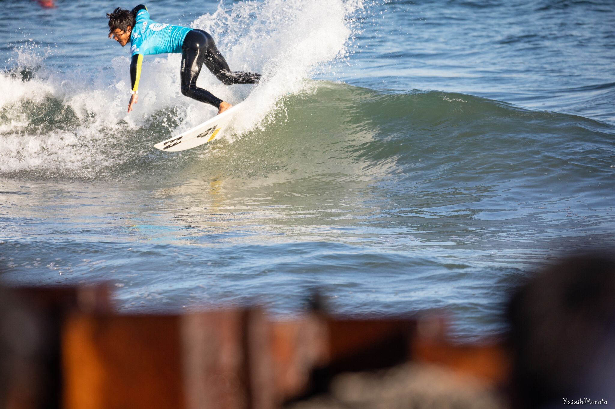 MENSで3位となった村上舜。今シーズンは伊良湖で開催されたISA World Surfing Gamesで4位となるなどスピード、技の切れ味、フローと、そのすべてにおいてネクストレベルに達しつつあるいま日本で大原洋人と並ぶ注目すべきひとり。Shun Murakami.