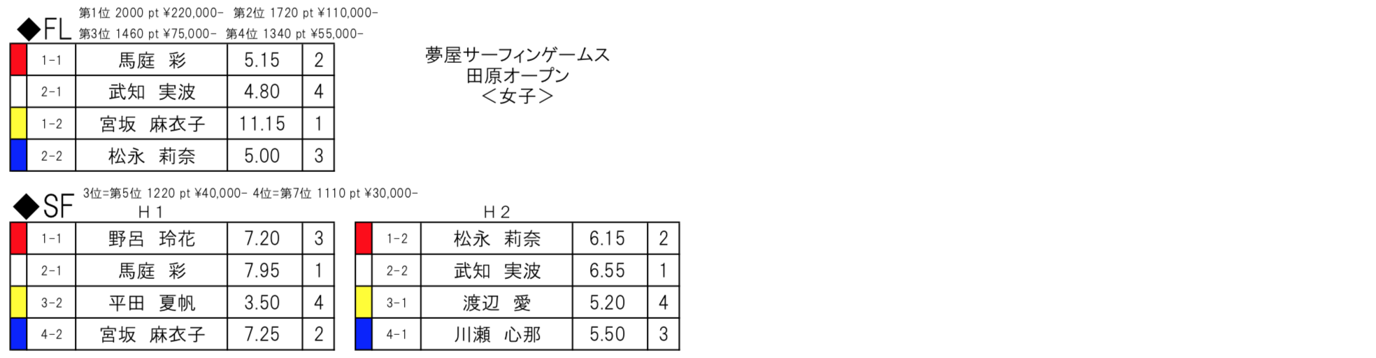 オンショアの影響を受けた腰前後のスモール・コンディションの中、MENSは大野Mar修聖、WOMENSは宮坂麻衣子が見事優勝!!