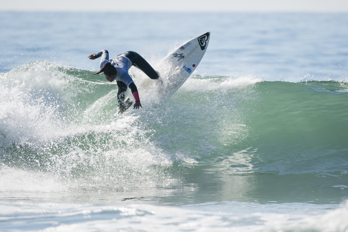 Girls U-16のラウンド5のヒート1ではトータルスコア14.27ptをマークした松田詩野がハワイ代表のLuana Silvaとアメリカ代表のCaitlin Simmersを抑えて見事1位でラウンドアップ!