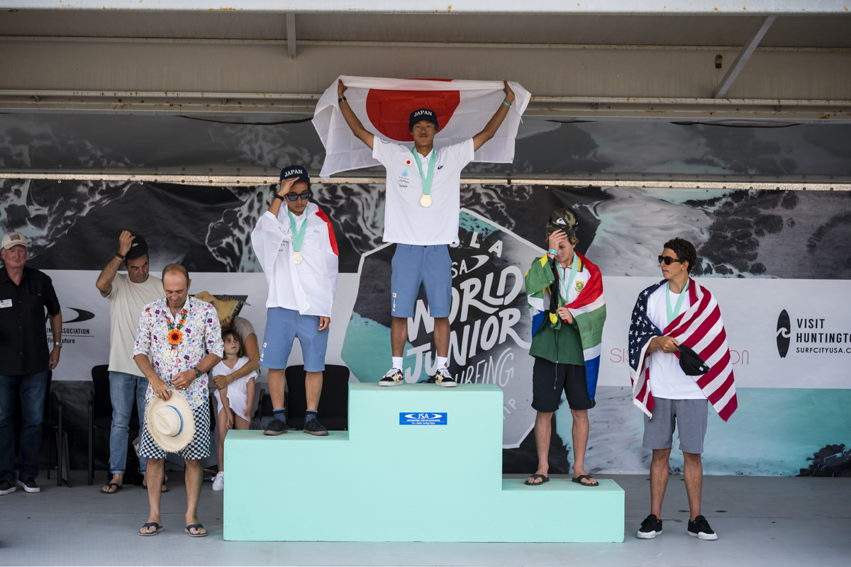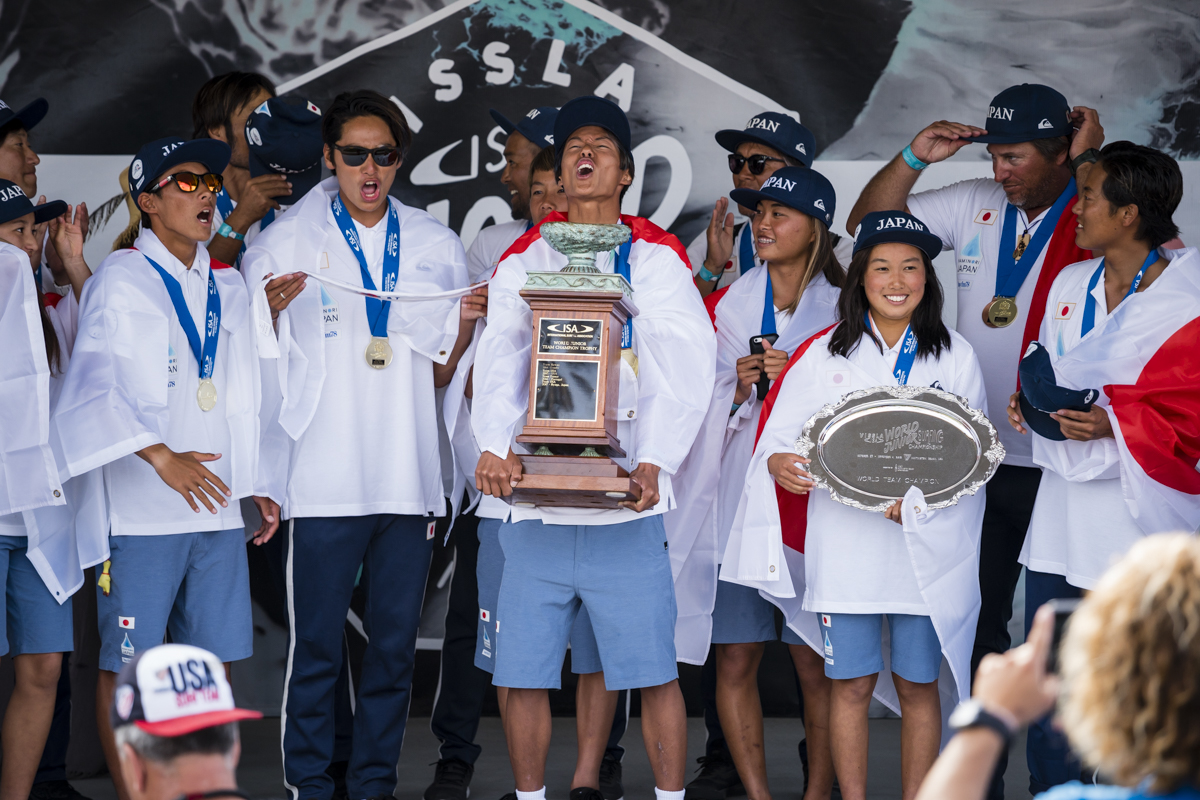 自由の国アメリカのカリフォルニアを代表する世界指折りのサーフタウン、ハンティントンビーチに響き渡った日本の国歌”君が代”。アウェイで掴んだ今回の国別総合金メダルは、今後も日本のサーフシーン、いや世界のサーフシーンで語り継がれていくに違いないだろう歴史的瞬間。
