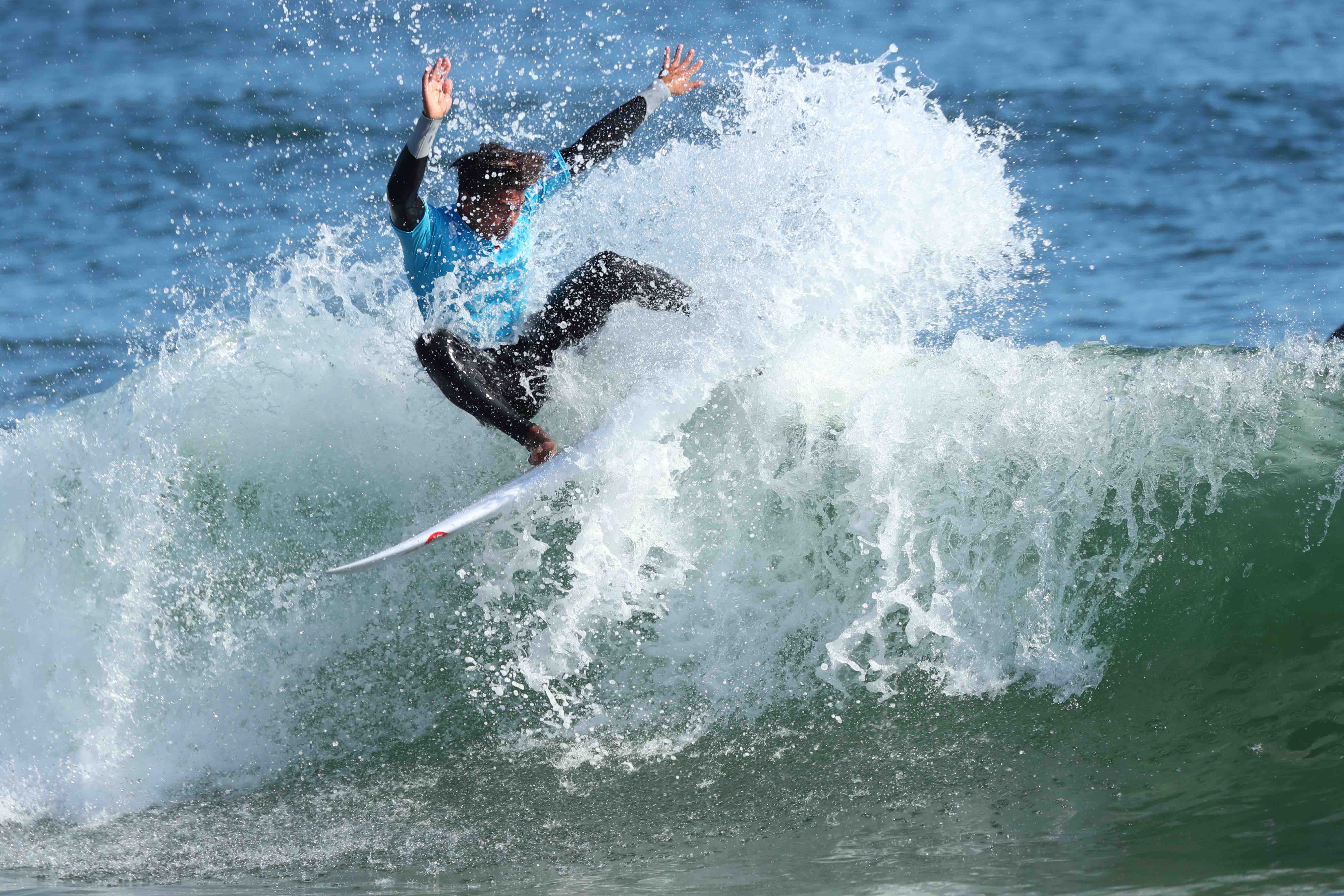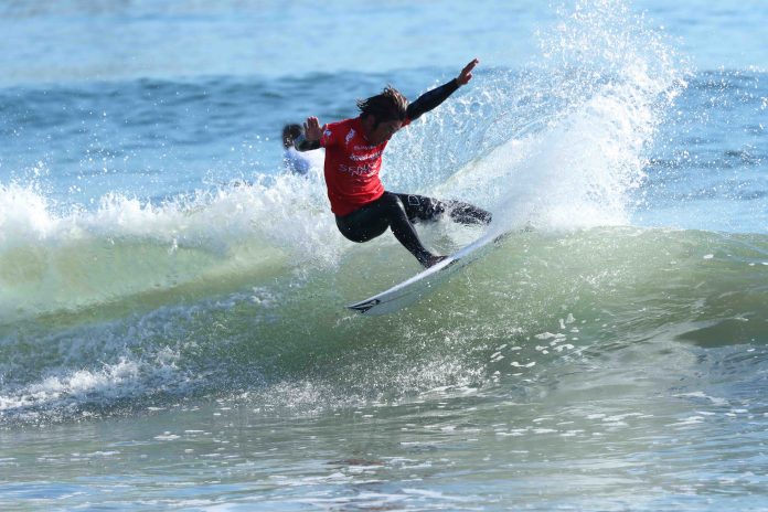 プアなコンディションの中でもいい波を掴み、WOMENSラウンド3では6.25ptをマークし、トップ通過を果たした鈴木姫七。クォーターファイナルでは逆転を狙って渡辺愛と高橋みなとに詰め寄るもあと一歩及ばず、惜しくも敗退となってしまったが、いい波を掴めばハイスコアを叩き出せるポテンシャルを持つ相手にとって油断できない選手のひとり。Himena Suzuki.