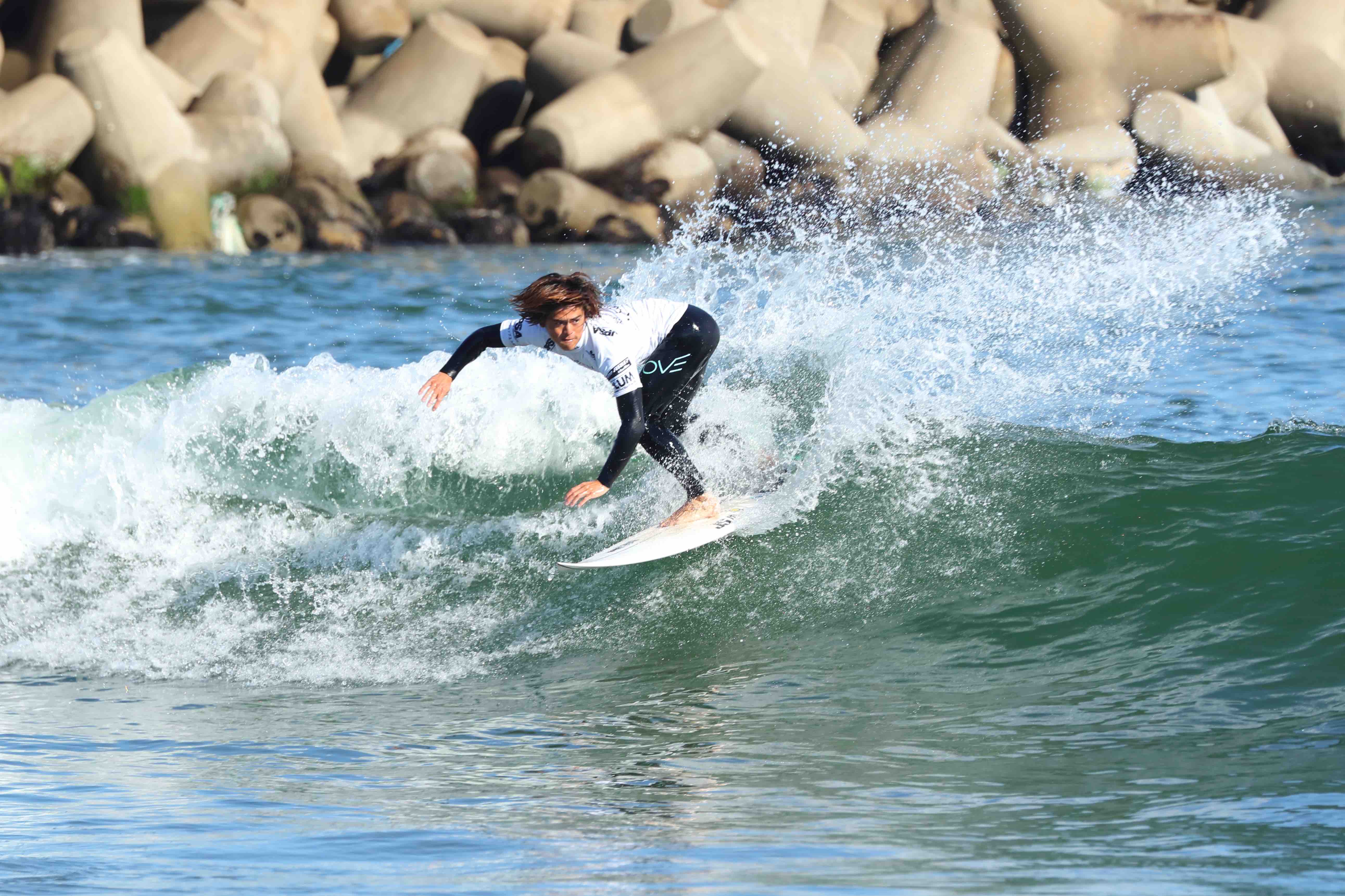 ローカルシードを得て出場の仙台新港生粋のロコボーイ、colorsmagでもお馴染みのトップサーファー熊谷航は地元の応援を味方につけ、見事ラウンド4へ進出。会場は大盛り上がりとなり、そのローカルヒーローぶりをみせた。Wataru Kumagai.