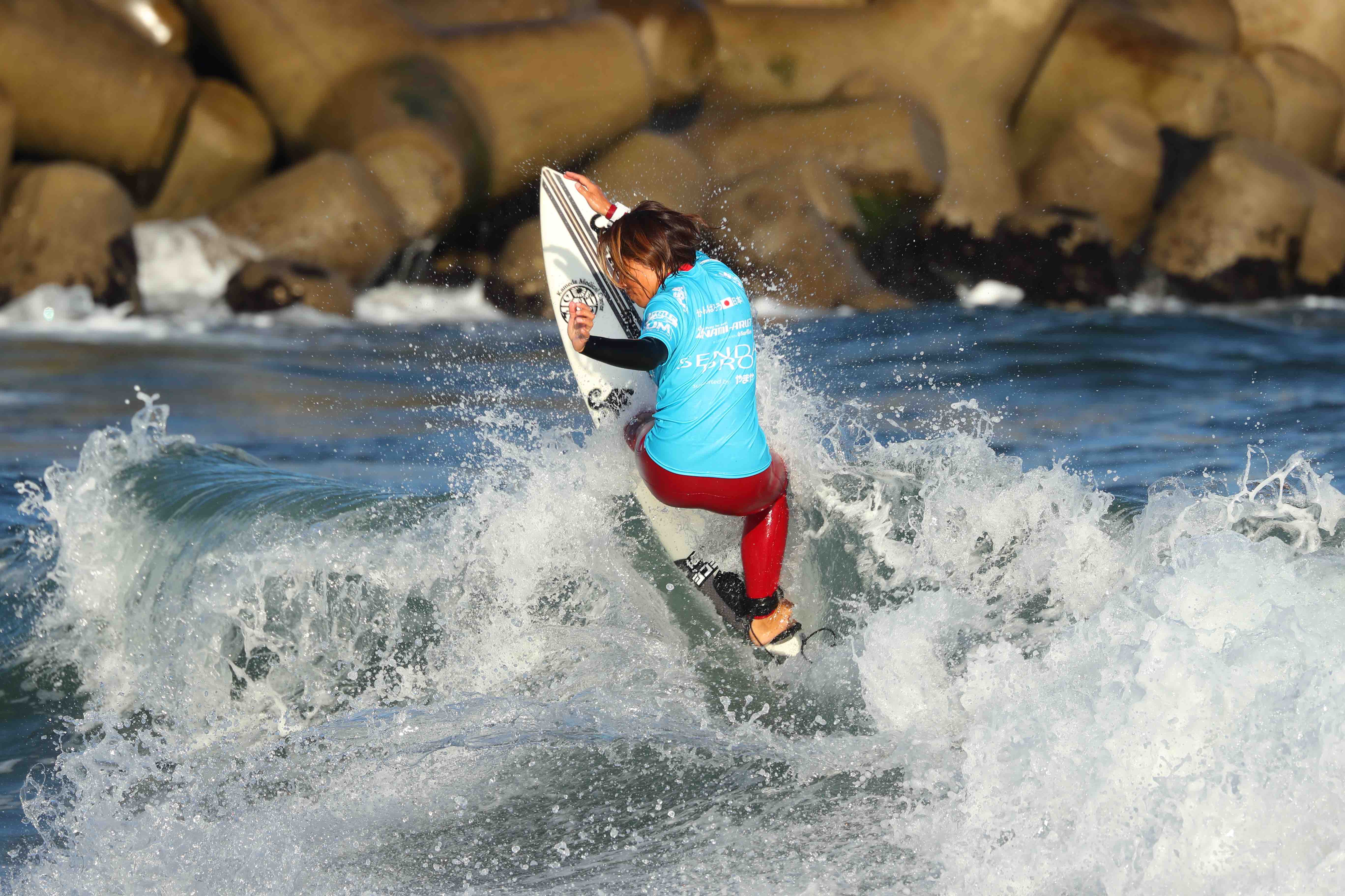 仙台新港をホームブレイクとする高橋みなと。ここで敗退するかと思われる試合の流れとなったラウンド3のヒート4では、まるで海が味方をしているかのごとく、ローカルたちが大切にする岸から見て左奥の”根っこ”に奇跡のセットが入り、大逆転を果たした。クォーターファイナルも勝ち上がり、延期となったセミファイナルへ挑む。今大会では優勝の可能性大!?Minato Takahashi.
