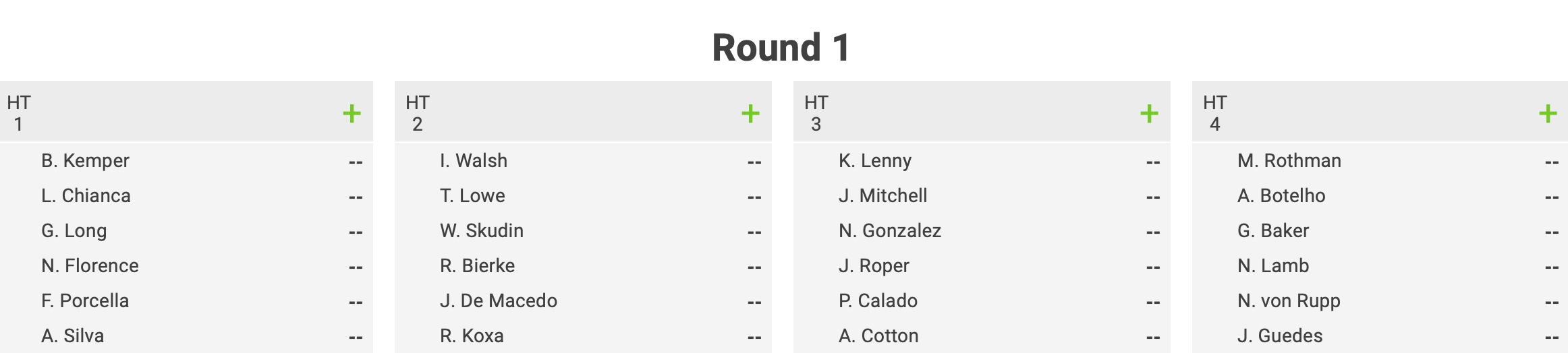 Heat 1: Billy Kemper (HAW), Lucas Chianca (BRA), Greg Long (USA), Nathan Florence (HAW), Francisco Porcella (ITA), Antonia Silva (PRT)