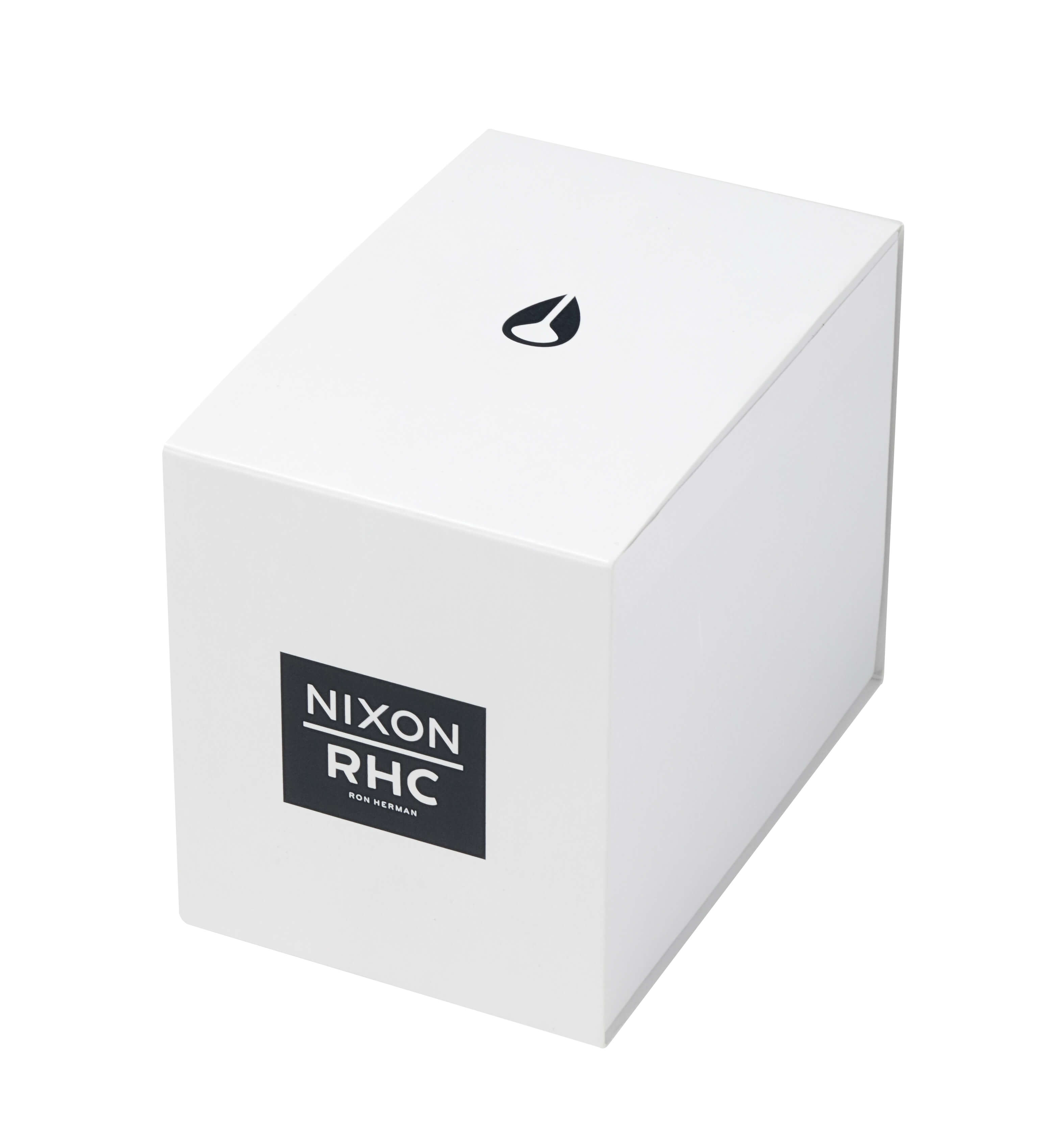 オールホワイトのケースバンド、フェイスには”RON HERMAN”、裏蓋とボックスには”RHC”のロゴが配されたエクスクルーシヴ仕様。数量限定の激レアアイテムとなっているので欲しい方はRHC Ron Herman福岡店へ!詳細は下記リンクよりNIXONオフィシャルサイト・ニュースページをチェック!!