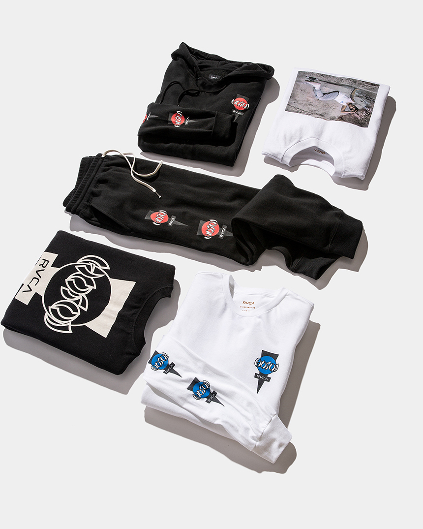 そんな彼とRVCAのコラボ・コレクションのリリースを記念し、来たる11/29(木)からハイストリート、カジュアルウェアを軸とするファンション&カルチャーを融合させたライフスタイル提案型ショップ”Kinetics”にて先行リリース・ポップアップストアがオープンすることが決定!!