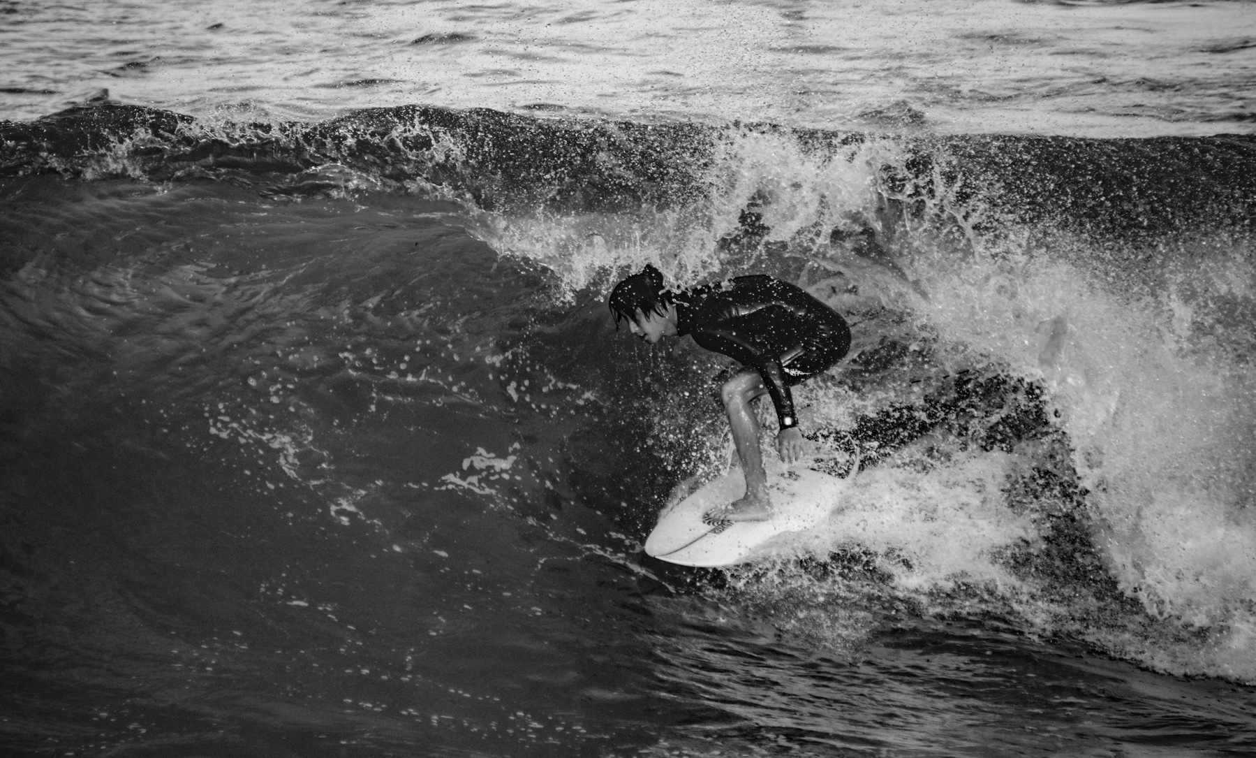 チューブの中に少しでも多くの時間ステイしていたい。それはチューブ好きなサーファーにとってメイクを取るのかクローズアウトとなってしまうのか、その瀬戸際ギリギリを追い求めてしまうもの。思った以上にスローだったこの波のブレイクに合わせ、後ろ足加重全開でコンマ数秒でも多くチューブにステイするのは北浦3兄弟の次男坊、北浦一樹。