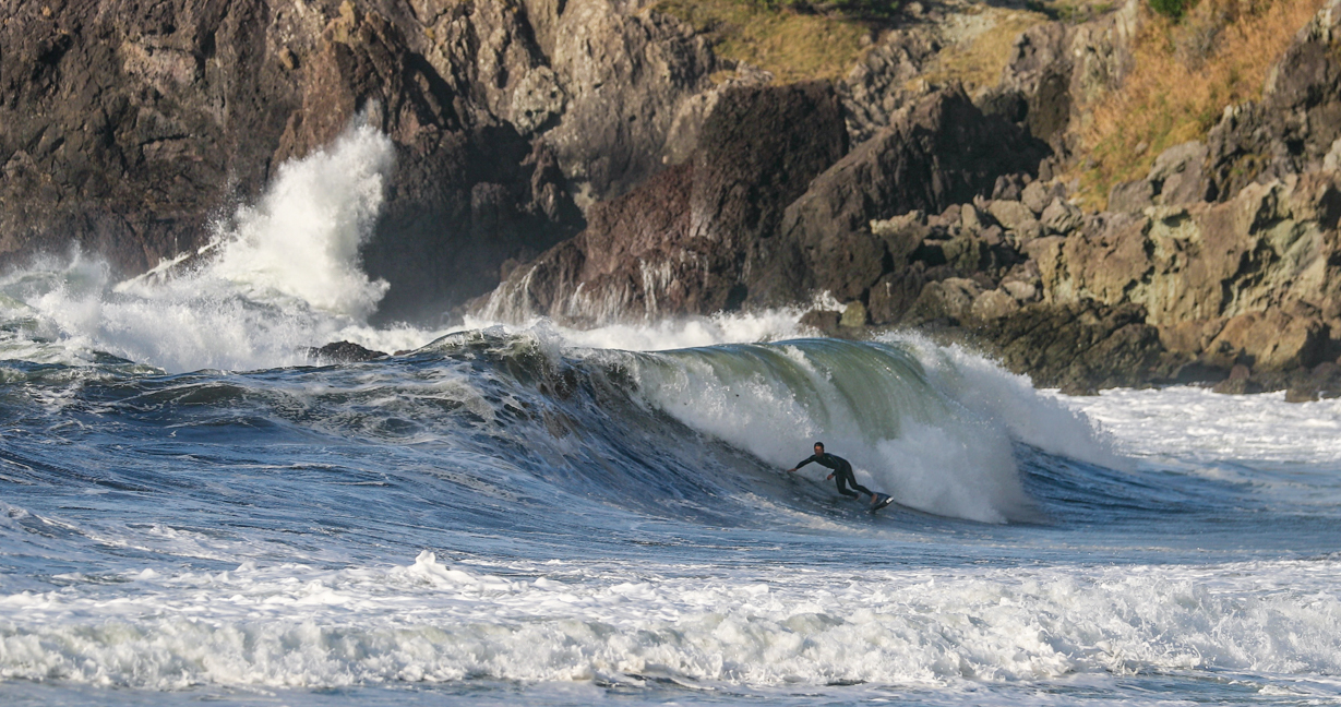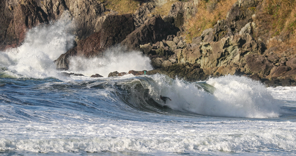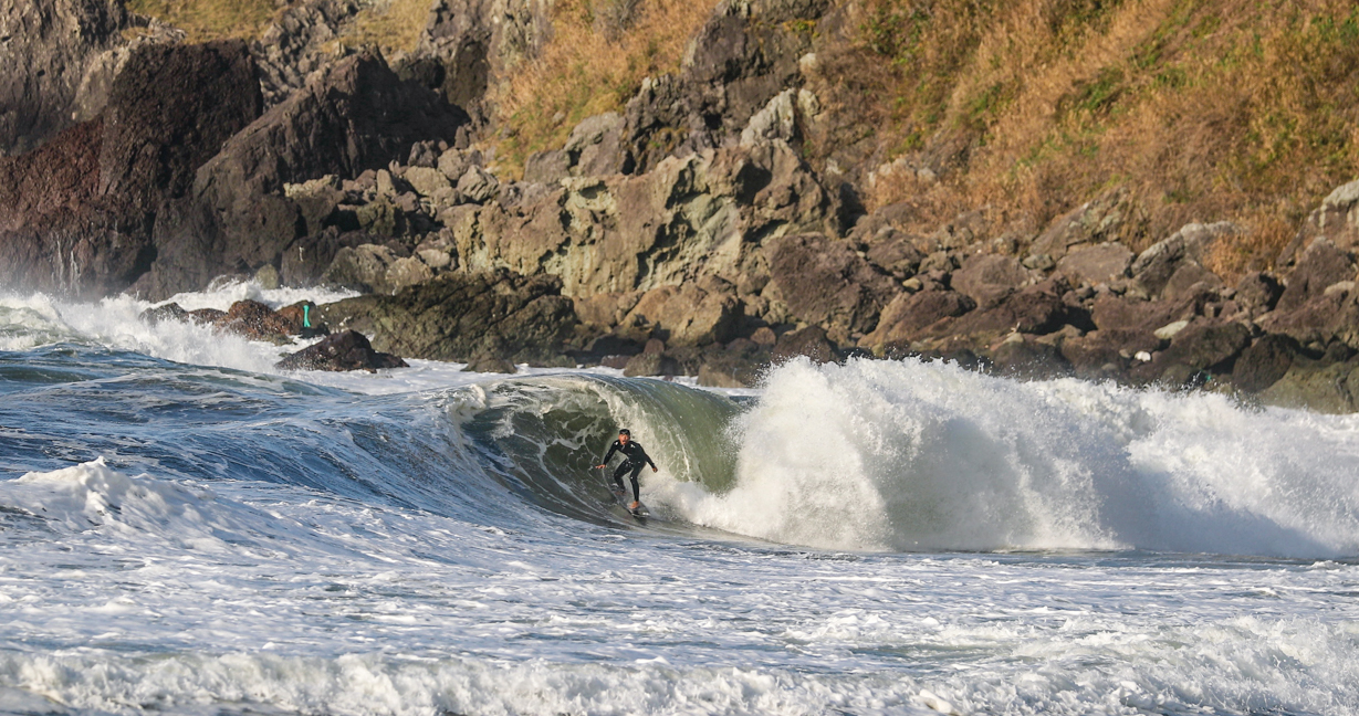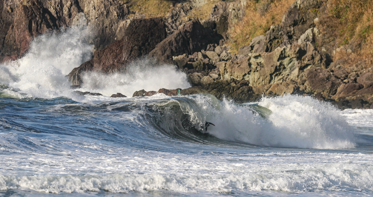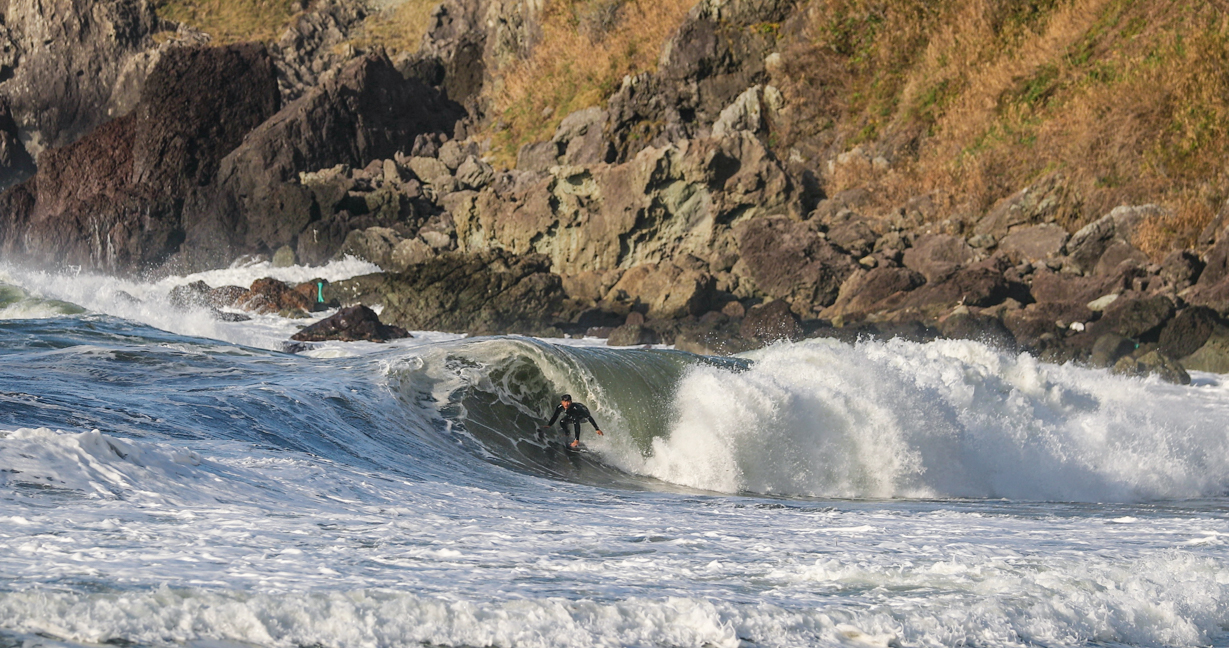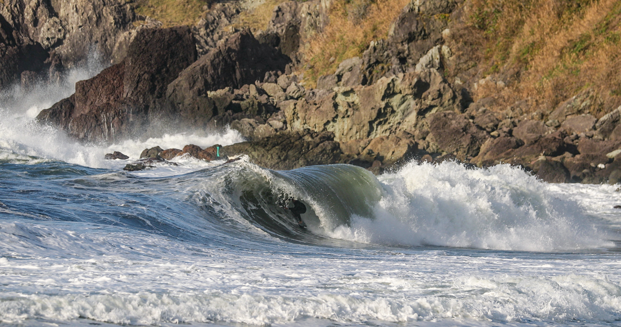 西高東低の気圧配置となれば、台風にも負けないパワフルかつサイズのある波に、ほぼ無人状態でありつくことができるこの季節の日本海エリア。