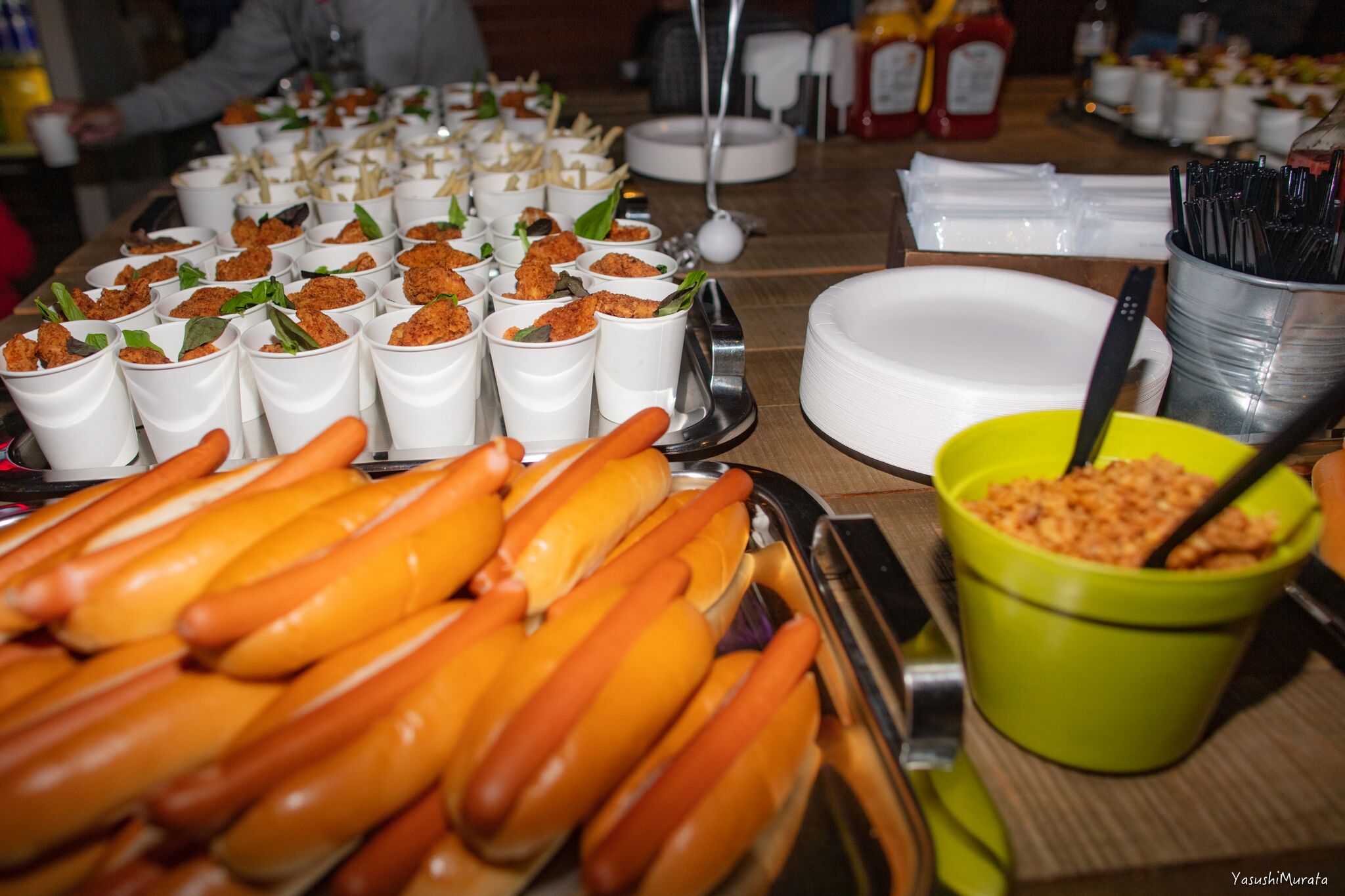 フリーフードとなった当日はTHE SUNS千葉と併設する40 miles STATIONがケータリングを担当。こだわりの本格的アメリカン・フードが振る舞われた。