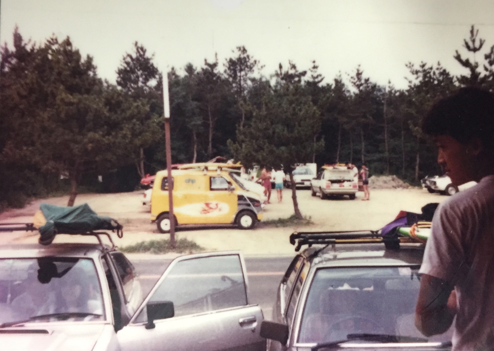 80年代初頭のお店から見た、サンライズポイントへ入るための駐車場の様子。30年以上経った今もここは駐車場。さまざまなスタイルのサーファーを受け入れてくれるオープンな雰囲気は、変わらず継承されている。Photo: Courtesy of CHP