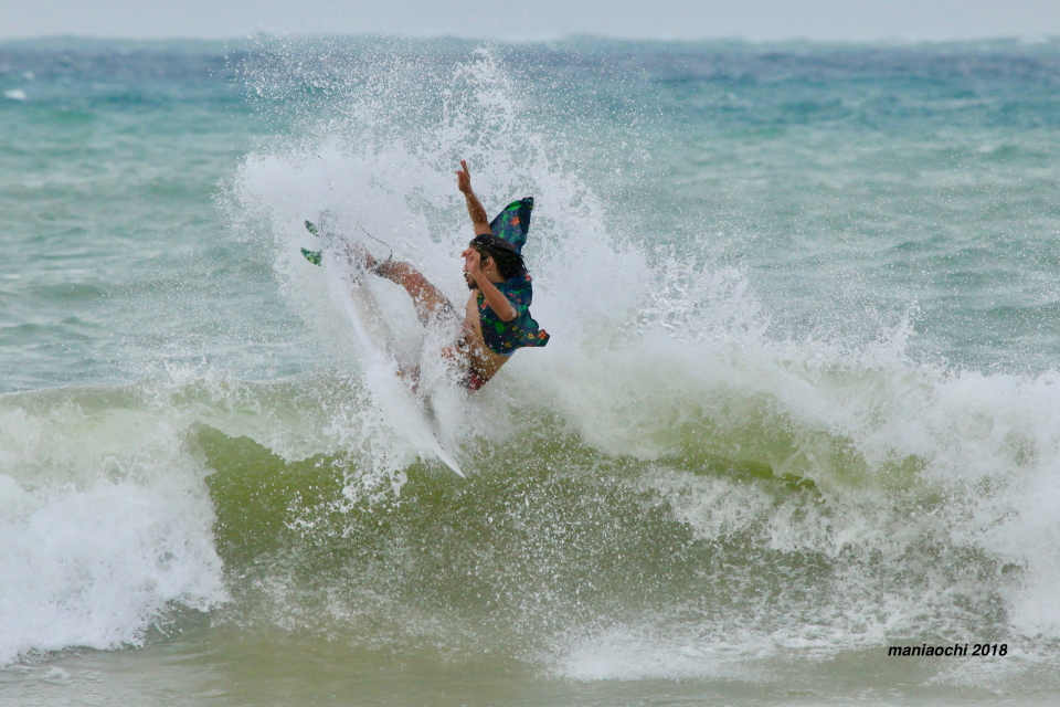 しかしながらサイドオンの強烈な風にみまわれる事となる。コンディションは決して良くはないがとりあえず間屋口プロがパドルアウト、その後に松岡さんも後に続いてパドルアウト。