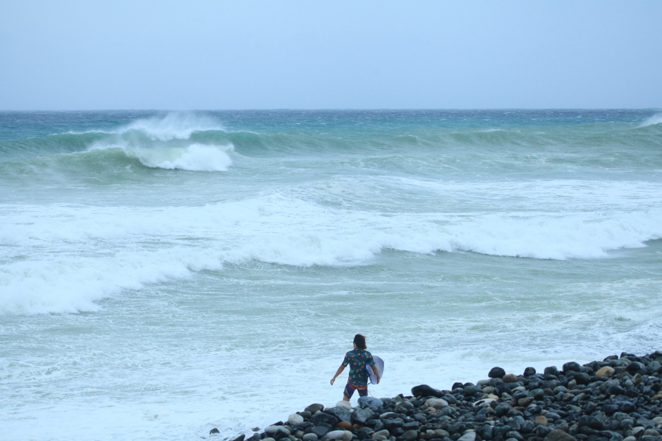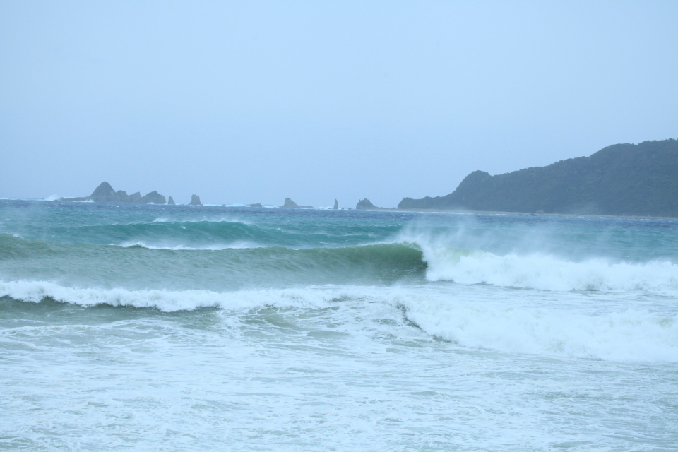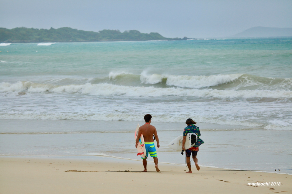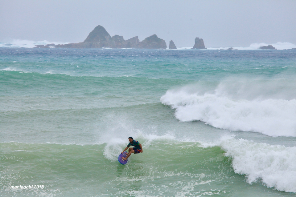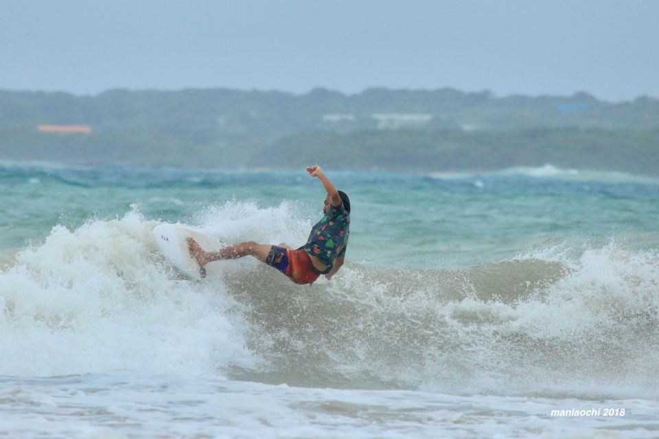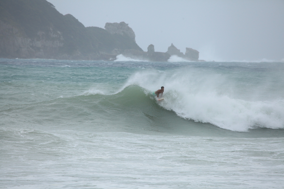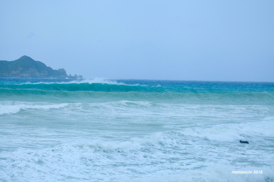 まだ風の影響をそこまで受けていないビーチへアテンドしてもらうことに。五島列島、福江の波に刻み込んで行った。