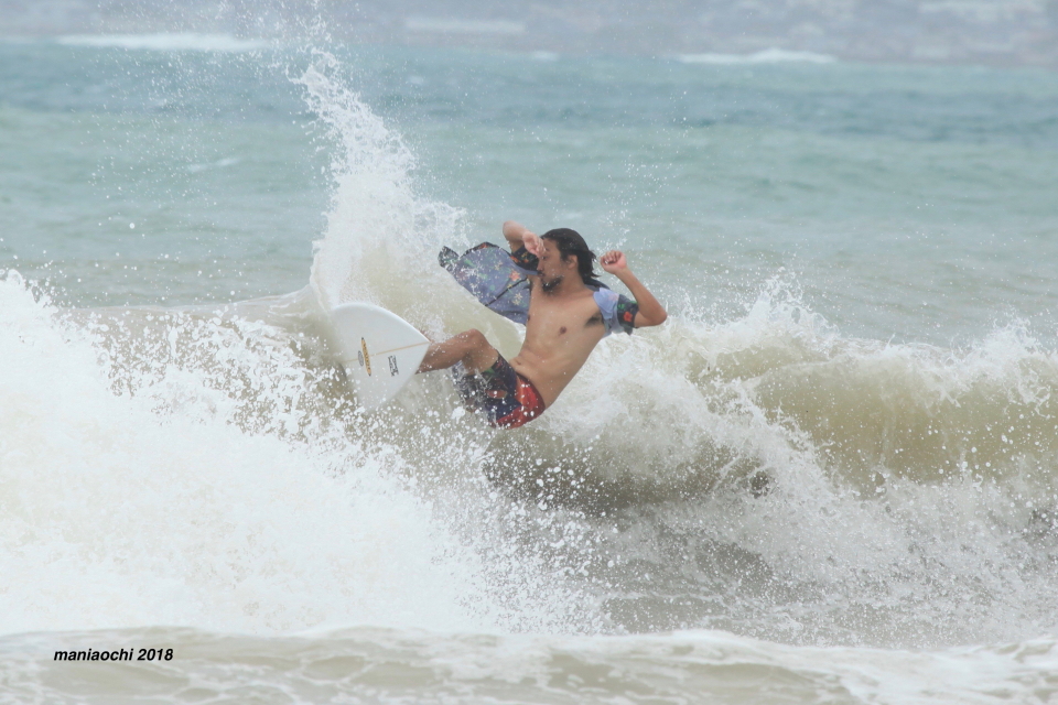 幾度なくセットにチャージしたものの強烈な風と波のコンディヨンが合わずにポイント移動となった。