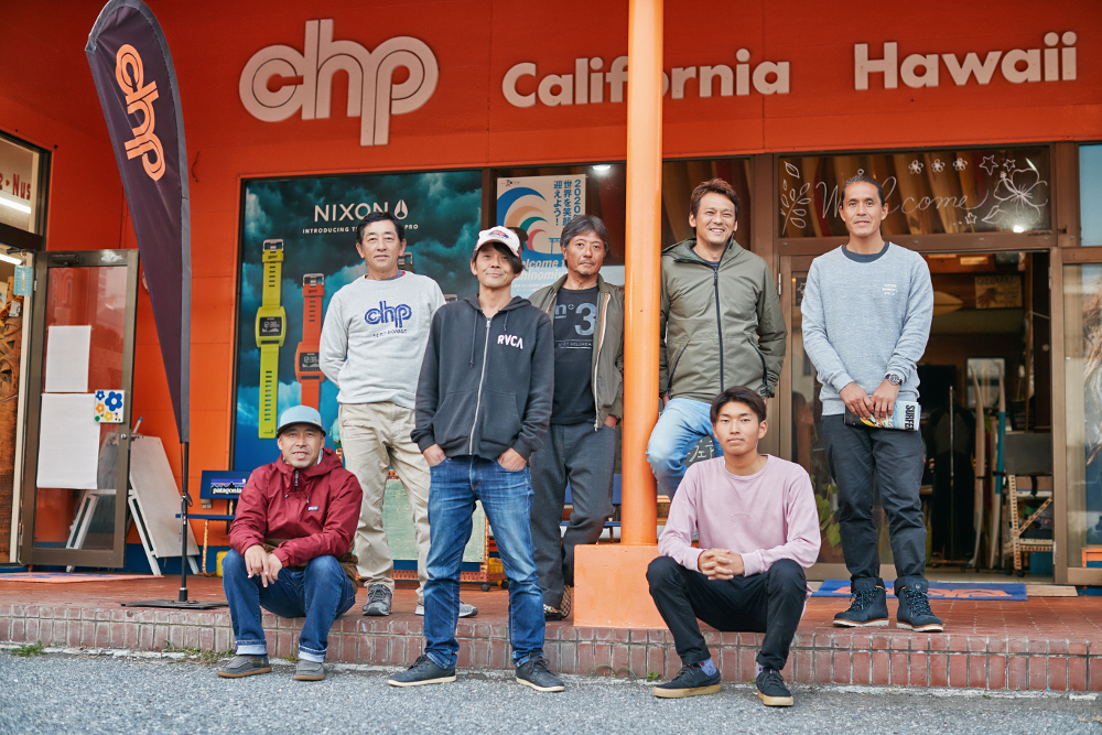 完結編のパート2では、80年代のエピソード、サーフボードのこと、ブランドの思いなどをお伝えする。世界を舞台に活躍したレジェンドでありCHPアドバイザーの岡野教彦さん、CHP創業者・中村一巳さんのDNAを受け継ぐシェイパーの中村大輔さん、サーフィンの楽しみを広く伝えるCHPプロライダー&アドバイザーの吉川共久さん、そして2代目代表の中村新吾さんにお話を聞いた。