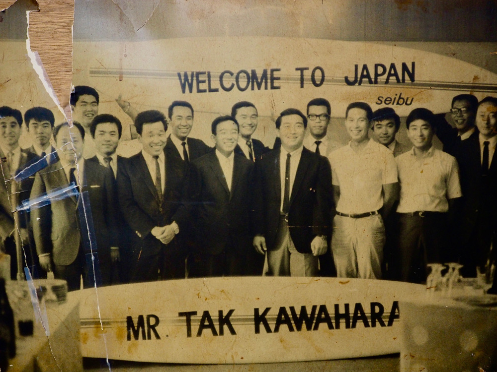 写真中央のスーツにノーネクタイの方がCHP創業者の故・中村一巳さん、その右隣りが、本場アメリカのサーフボード作りを最初に日本に伝えたサーファー、タック・カワハラさんだ。こうして日本にモダンサーフィンの種は蒔かれた。一巳さんはサーフィンのために力を尽くし、その芽は今や大きく繁った。Photo: Courtesy of CHP