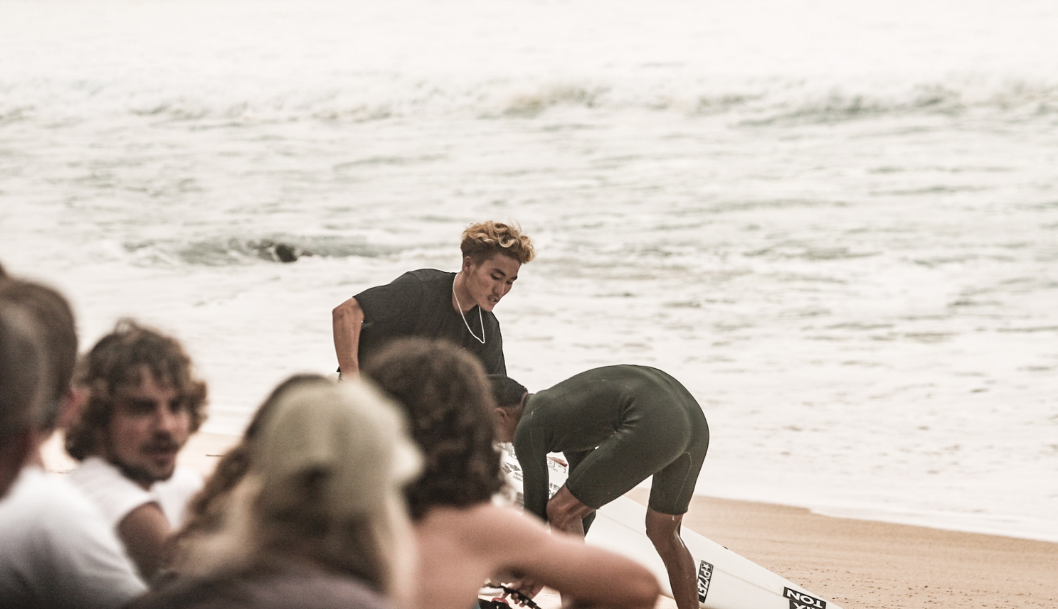 コンテスト当日は早朝はサーフィン不可能と思えるほどの巨大なセットが押し寄せるクローズアウトとなった中、お昼まで様子を見てスタートすることが決定。