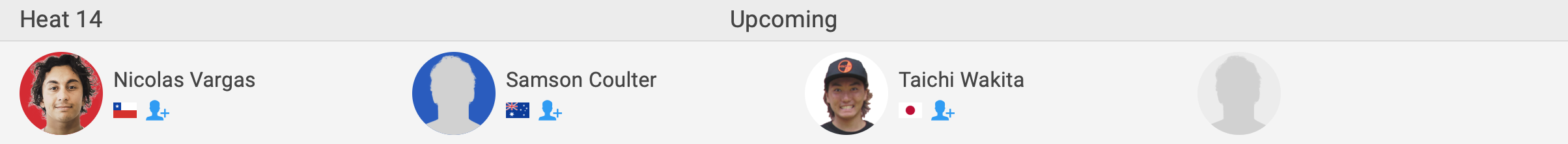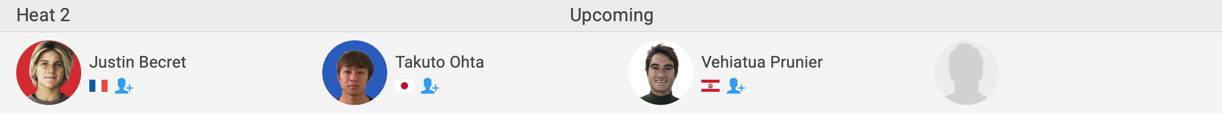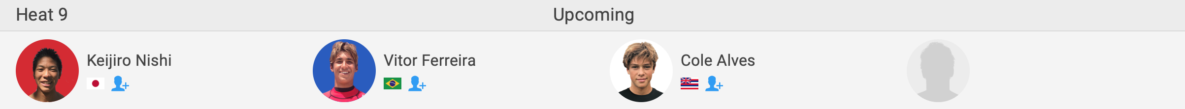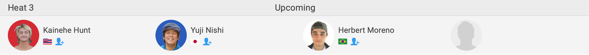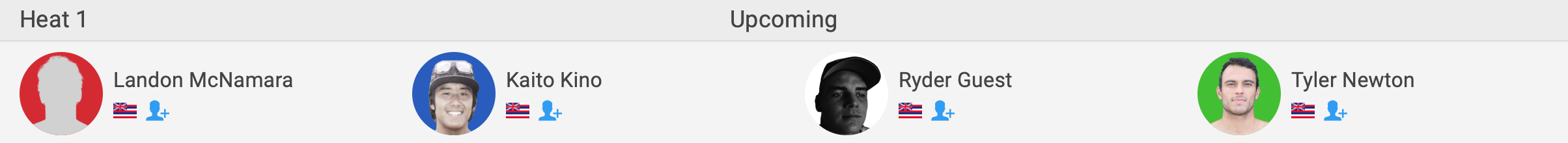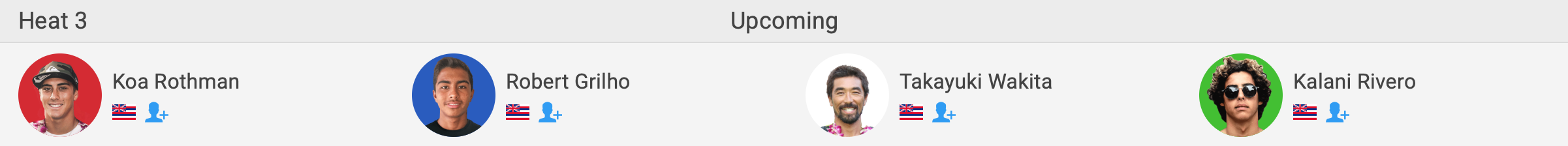 注目のハワイアンシード選手たちが登場するラウンド1のヒート1には喜納海人、ヒート3には脇田貴之が出場。