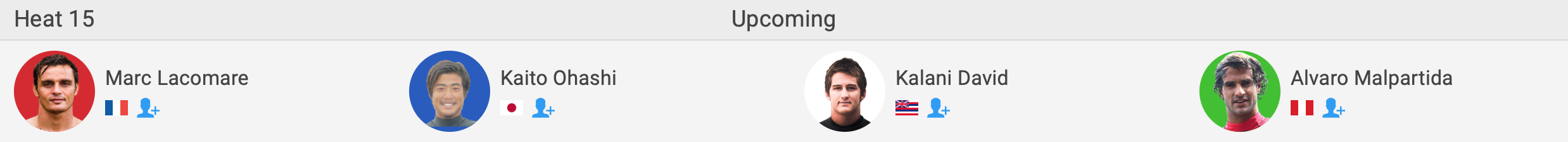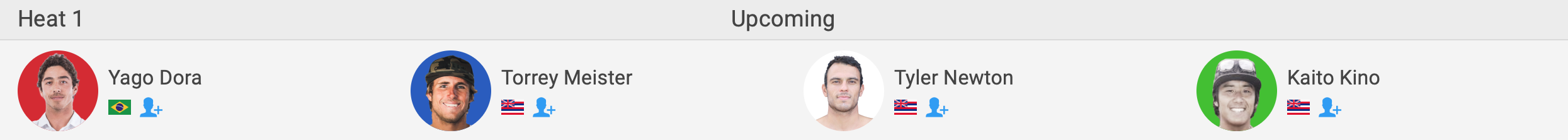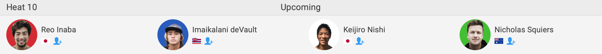 ラウンド4のヒート10では稲葉玲王と西慶司郎が同じヒートに組み込まれ、Imaikalani deVault、Nicholas Squiersと対戦予定となっている。