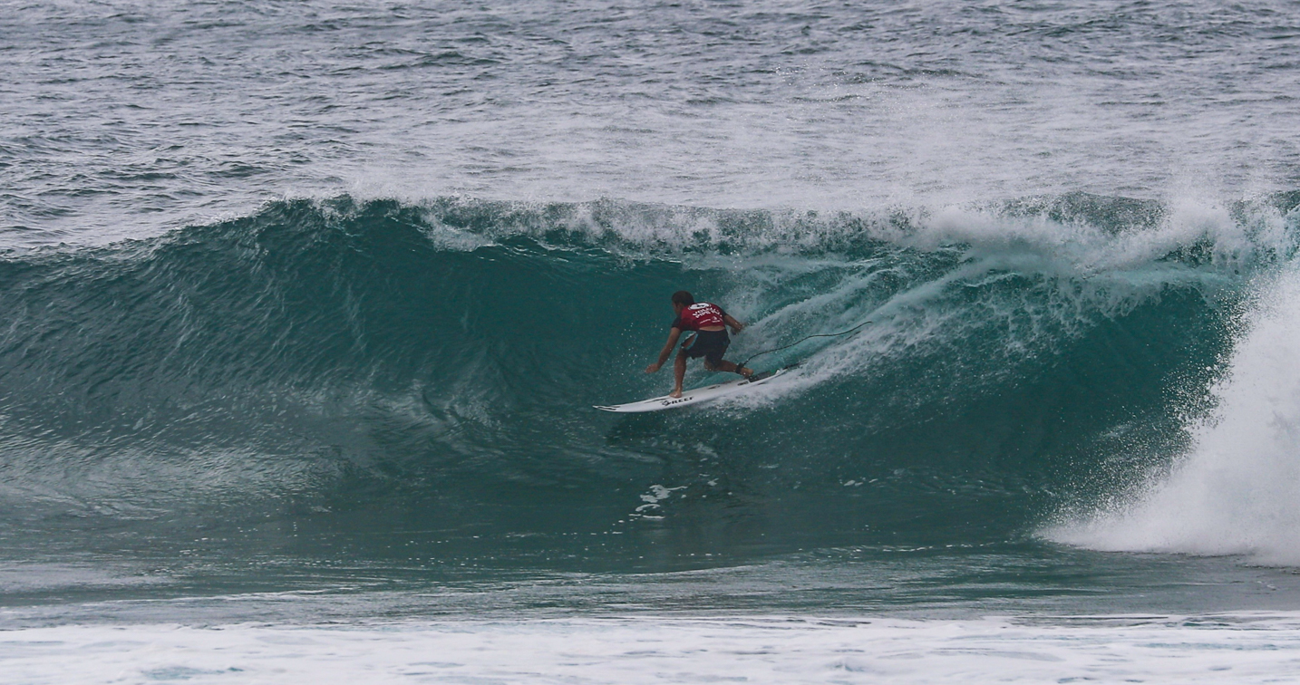 2本目の波で6.33ptをスコアしたSamson Coulter以外はトータルスコアで1.60pt代とロースコアだったことからわずか1.40pt以上出せば逆転可能だったが、最後までパイプらしい波を待ち続け、されどその波が来ることはなく、無念にもここで敗退となってしまった。