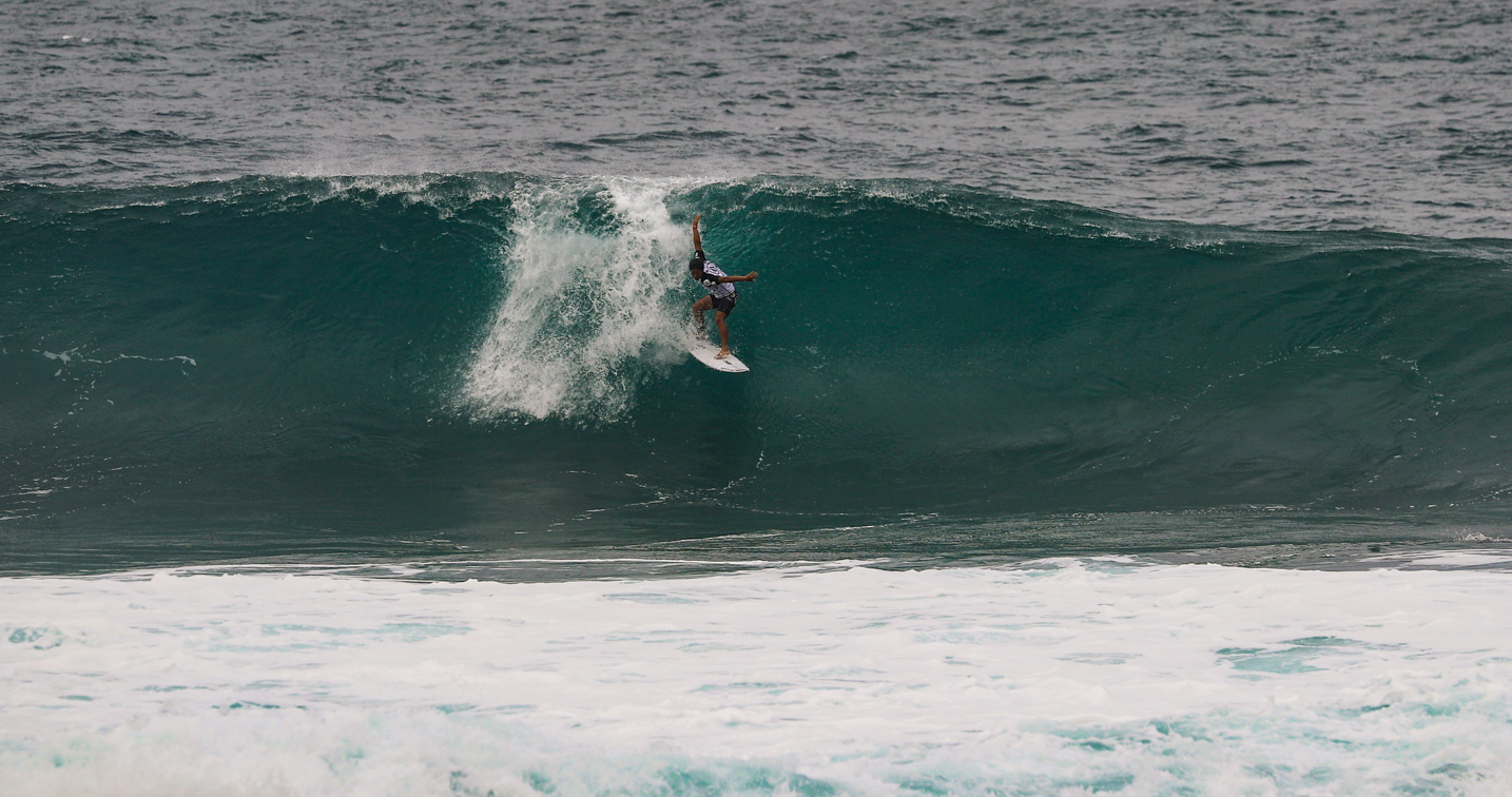 今シーズンもWave of The Winterにノミネートされるなど、パイプライナーとしての風格をみせてきているだけにその活躍に期待がかかったが、1本目に掴んだセットの波でテイクオフからのまさかのワイプアウトとなり、ビッグチャンスを逃すことに。