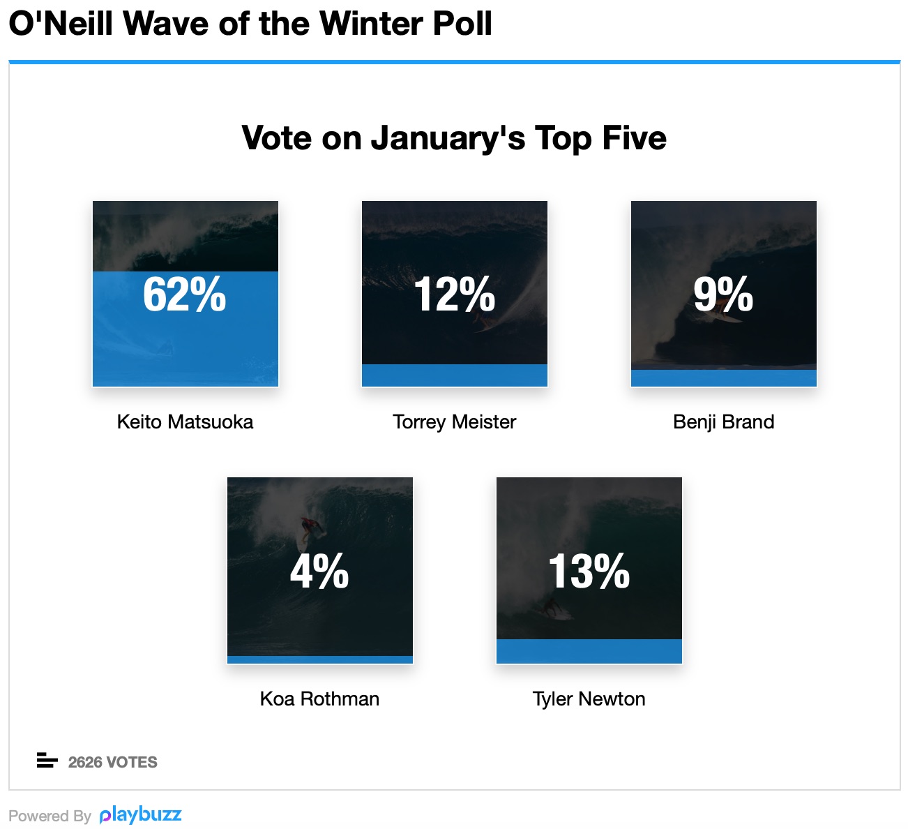そんな強豪たちが顔を揃えた中、Surflineのサイト内に設置された特設ページで行なわれた一般投票を経ての今回の価値ある優勝となった。