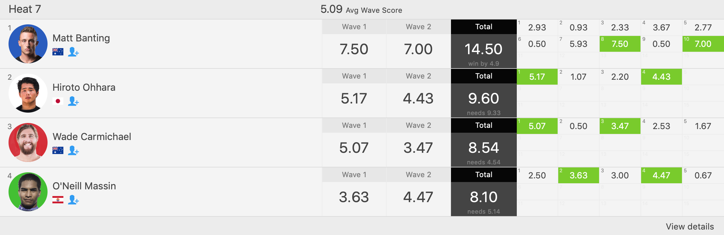 迎えるラウンド4ではヒート6でオーストラリア出身のCaleb Tancred、ブラジル期待の若手Mateus Herdyと対戦予定。