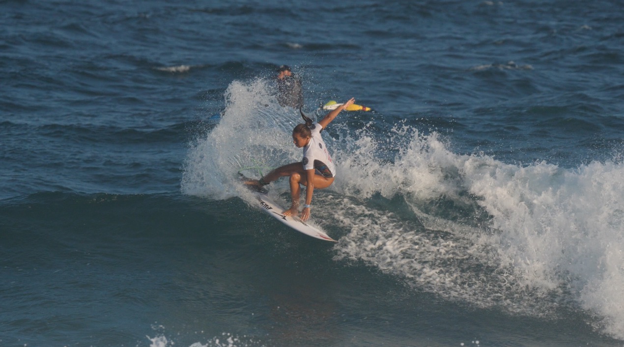 同時開催中のWOMENS QS6000″Holmes Civil Developments Pro”は、ヒート3に出場の大村奈央、ヒート5に出場の都筑有夢路と川合美乃里といった日本人選手の活躍に期待がかかるが惜しくも全員ここで敗退。