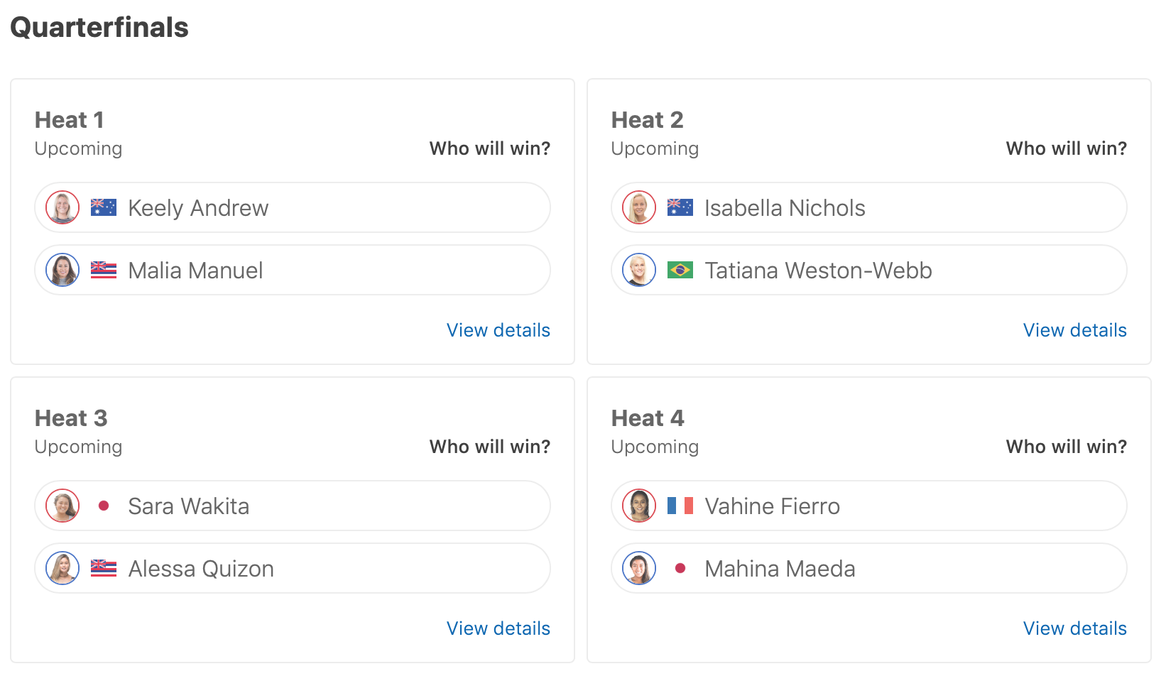 さらに前田マヒナはヒート4でタヒチのVahine Fierroと対戦予定となっている。