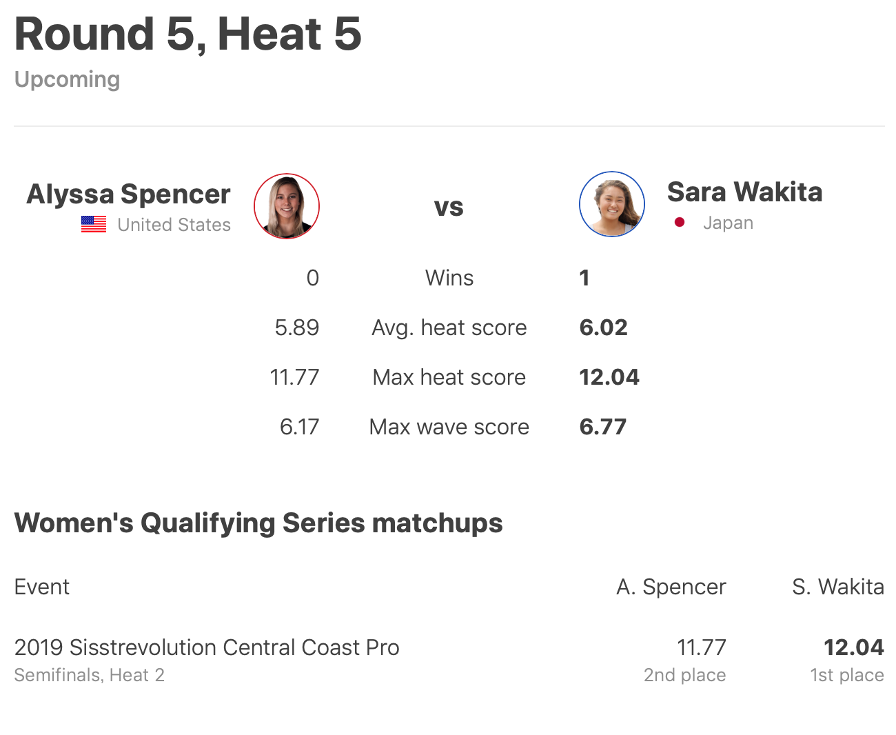 ヒート5でAlyssa Spencerと対戦となった脇田紗良は、1本目から7.33pt、2本目で8.00ptをまとめヒートの流れを掴むと、逆転を狙うAlyssa Spencerの追従を許さぬまま見事逃げ切りラウンドアップ!!