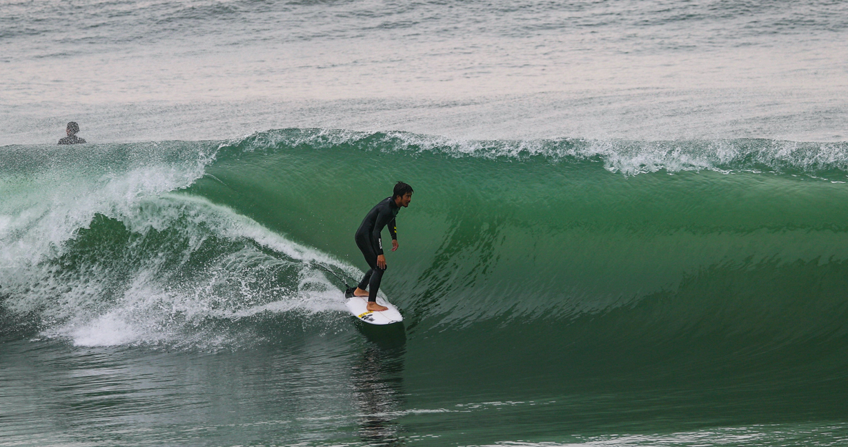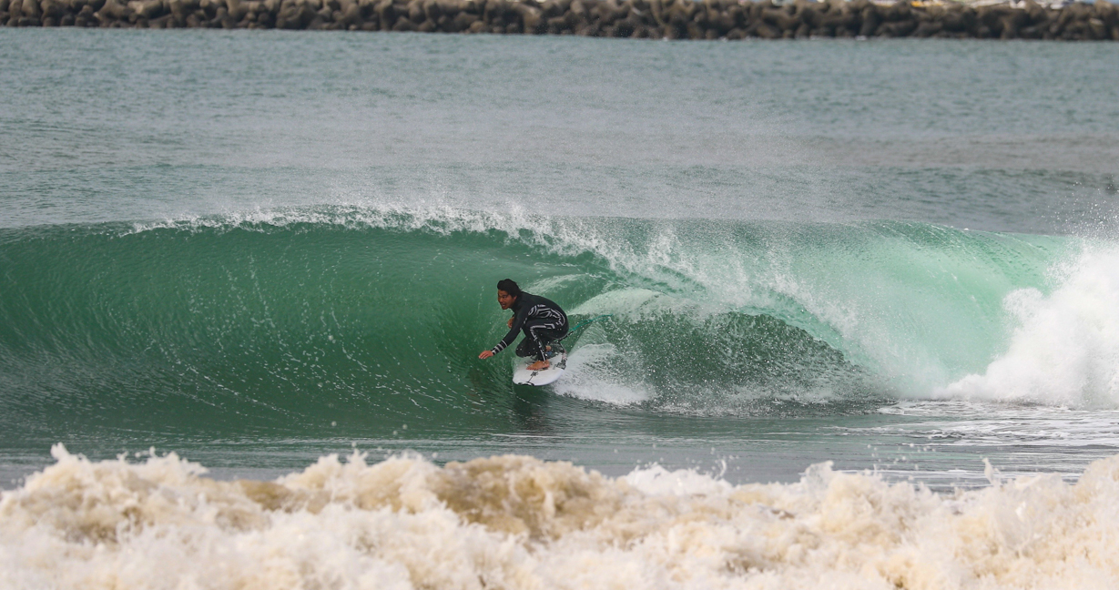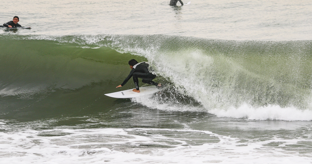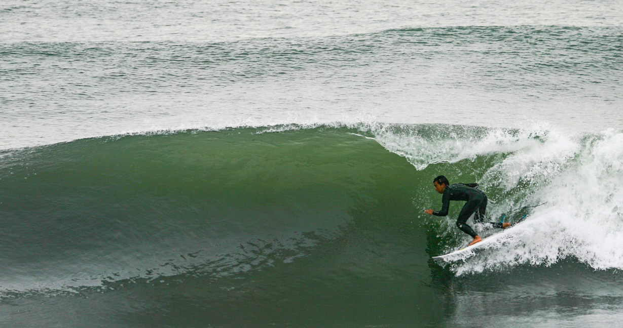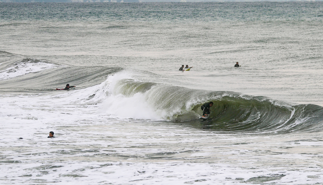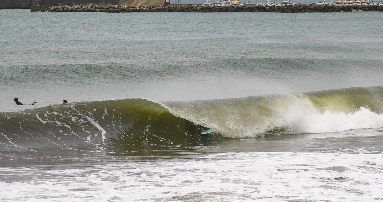 実際にビーチに降り立ってみると波は予想以上にパンプしており、チューブを形成するインサイドセクションでは時折プチスピッツを吹く波も入るグッドコンディションに恵まれた。