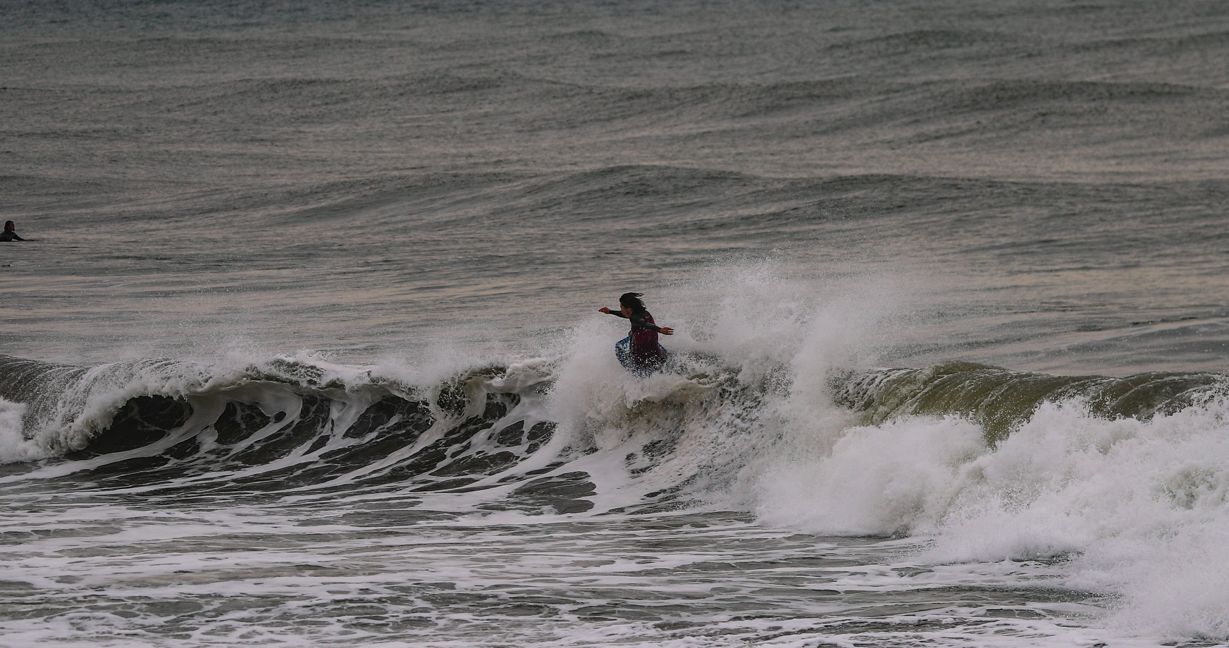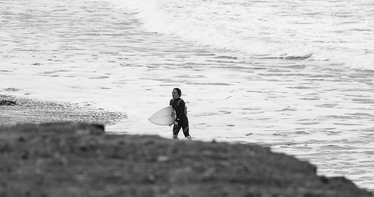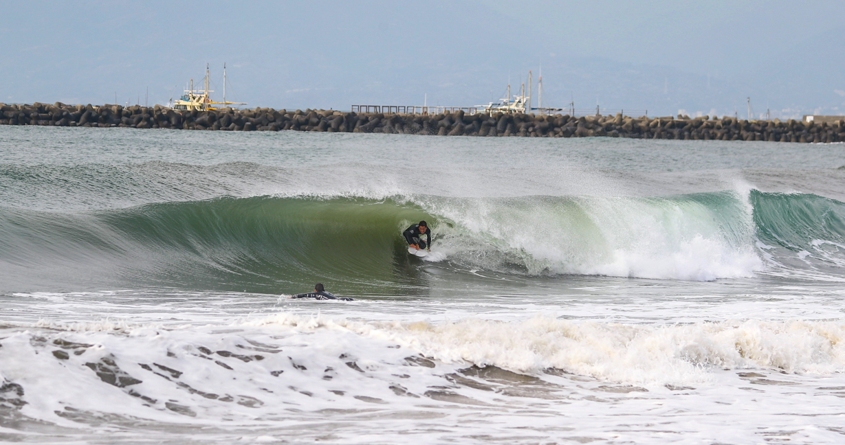 フィンレスサーフという目線が普通になった現代において、改めて見直してみるといかにこの男がすごいかを痛感せざるを得なかった。ボディーボードのニースタンディング・グランドチャンピオンの経歴を持つ富田和麻プロも大橋海人同様、このポイントの目の前で生まれ育ち、日本のトップに立ったサーファーのひとり。骨折した足が完治せぬままの今回のセッションにおいても、見事なチューブ・チャージ、そしてロックンロールなフローターまでショートボーダー顔負けのハイパフォーマンスを披露してくれた。Kazuma Tomita.