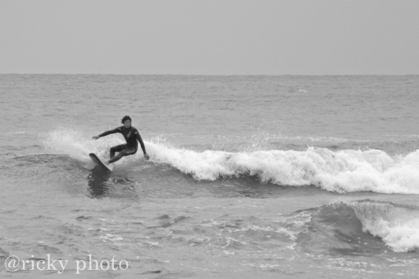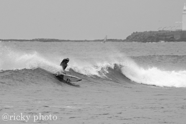 そして小波にも関わらずフルレールのカービングを魅せる鎌倉の老舗サーフィショップokuda style店長の原田氏の姿も!