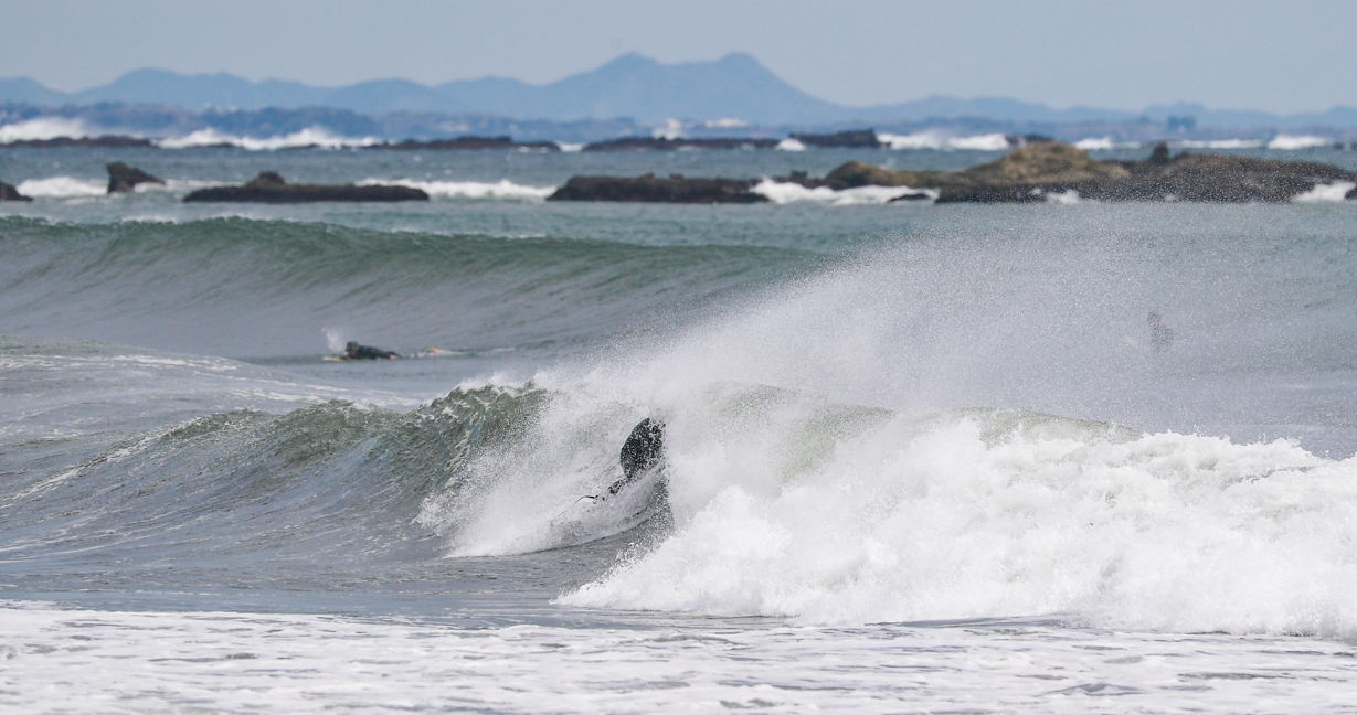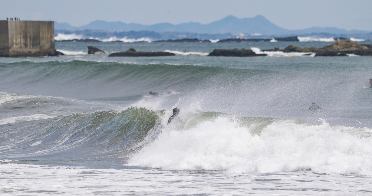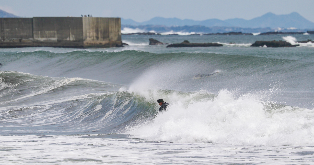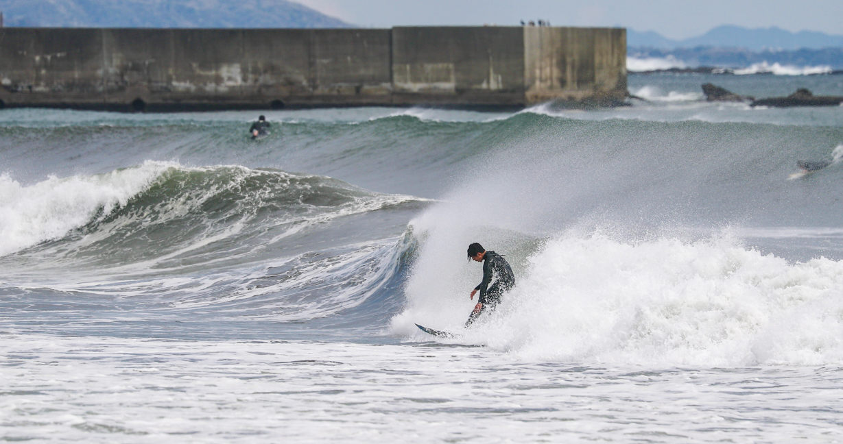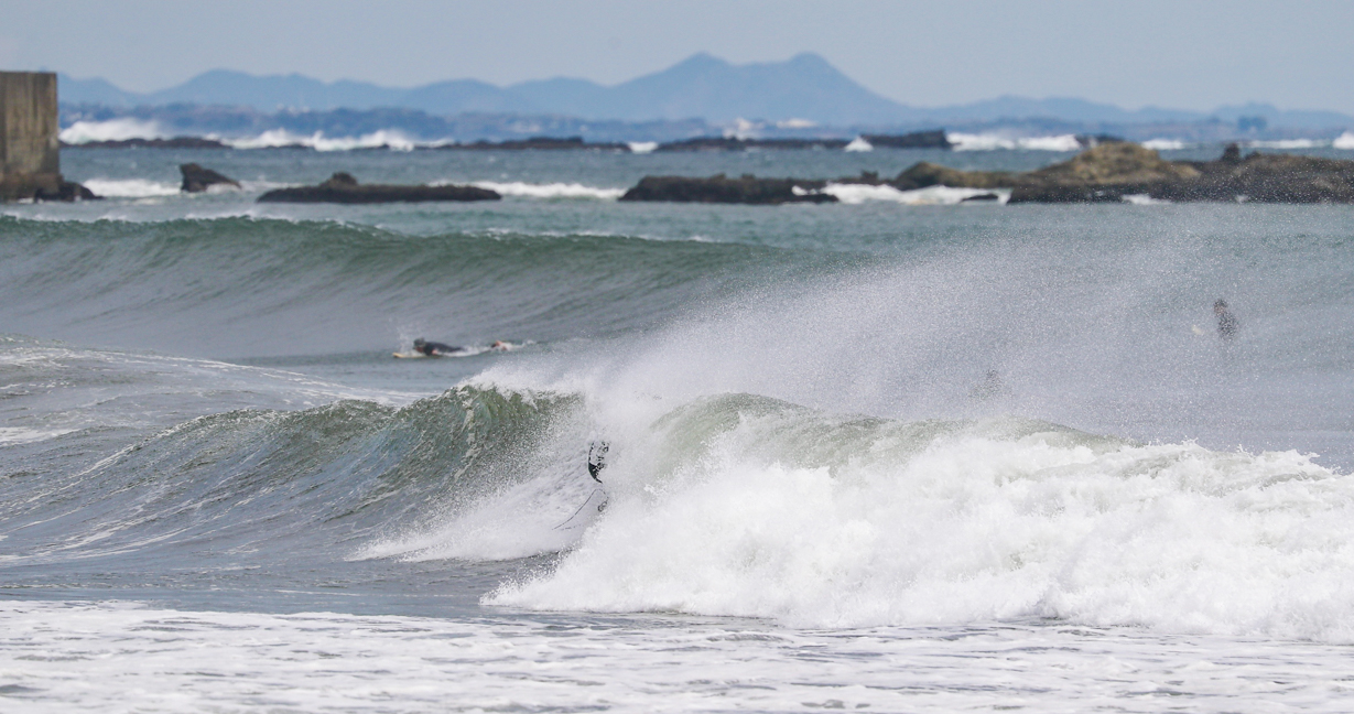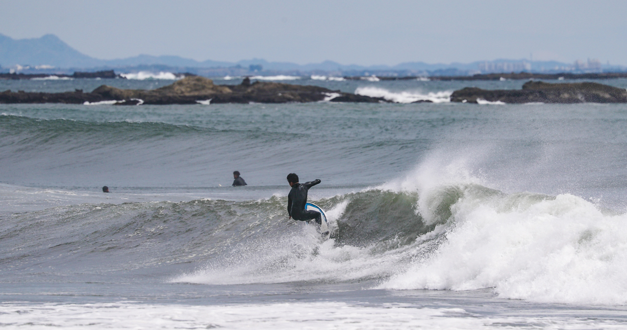 低気圧の通過により、南うねりのオフショアで1日を通してグッドコンディションに恵まれた4/11(木)の湘南エリア。