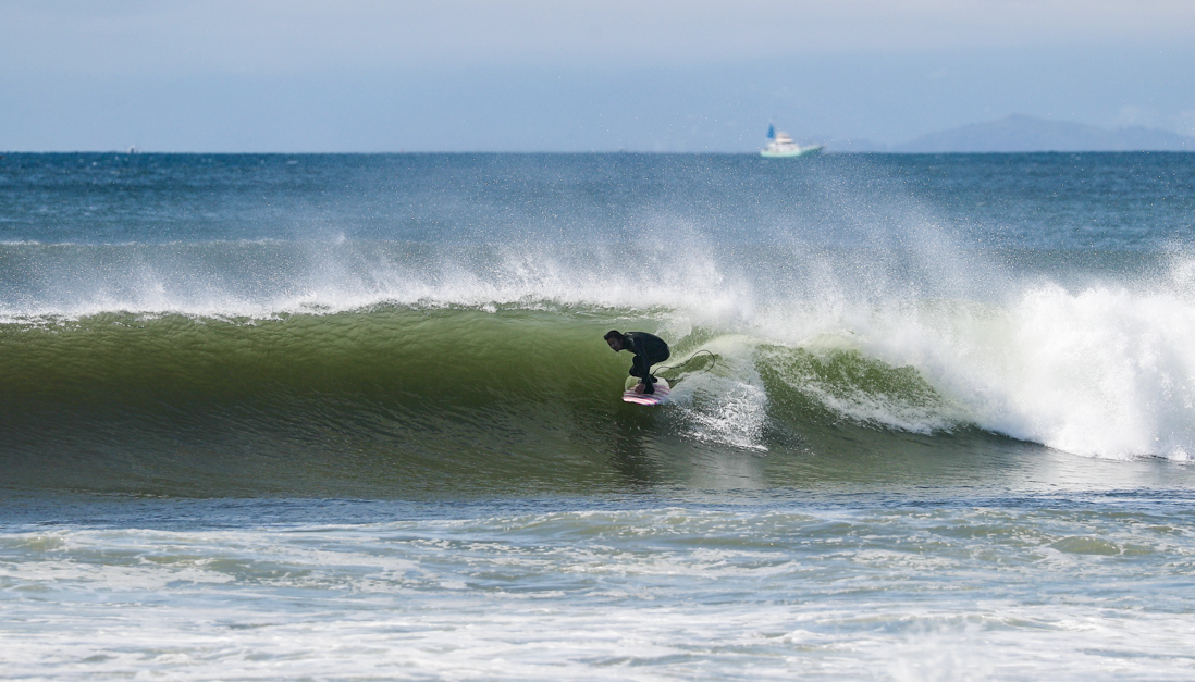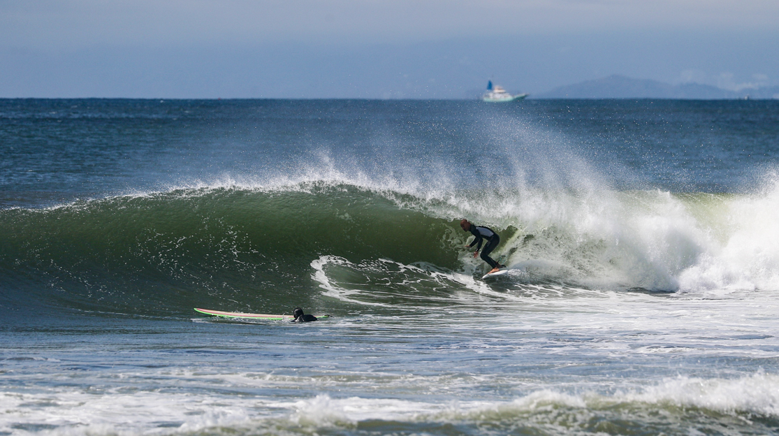 そんな和田大と共に、この日のチューブ波を攻めまくっていたのは、このビーチブレイクをホームに、時と共に著しく変化していくその様を見続けてきた今の湘南では珍しい生粋のローカル川高氏。