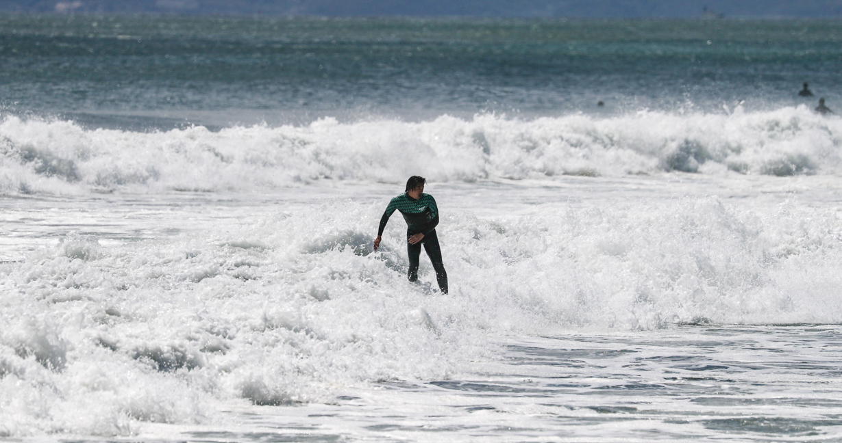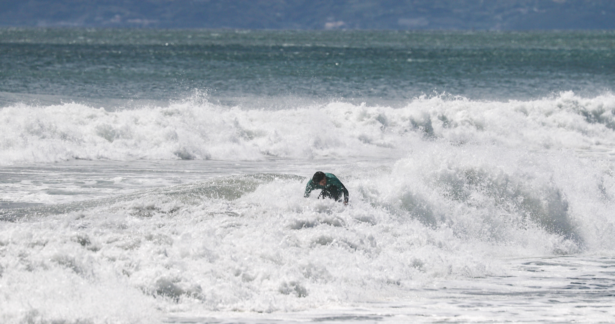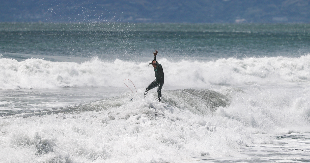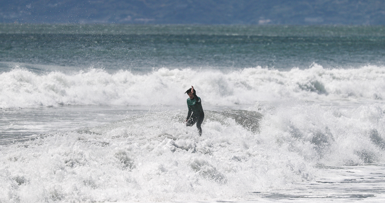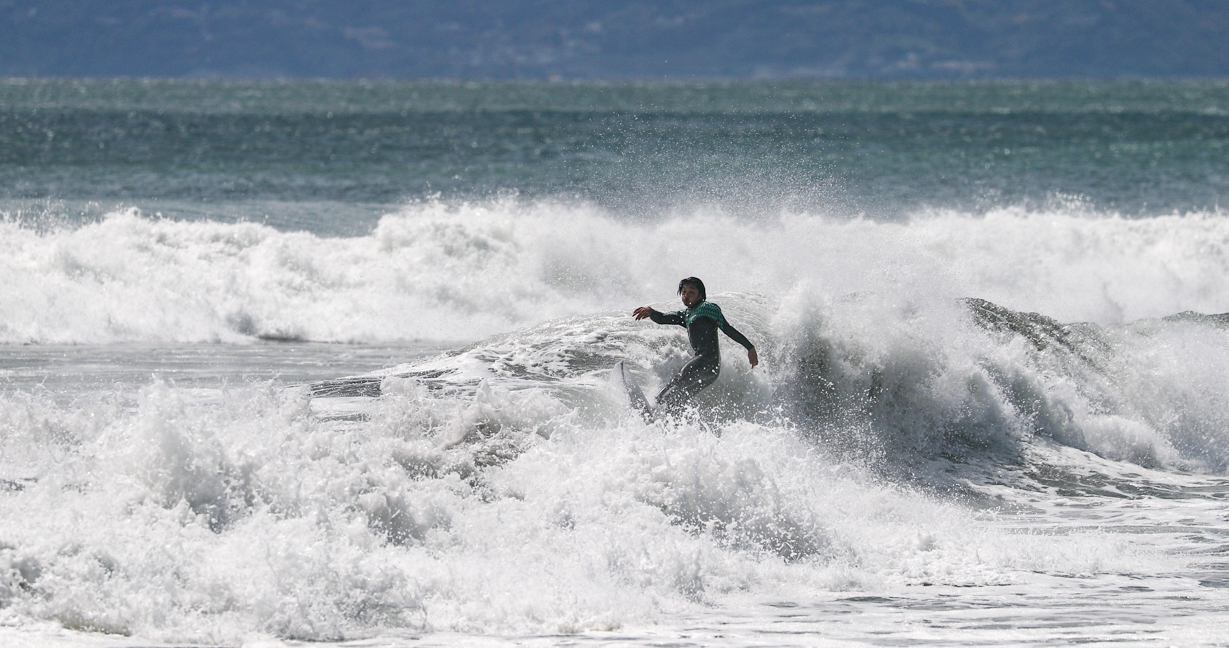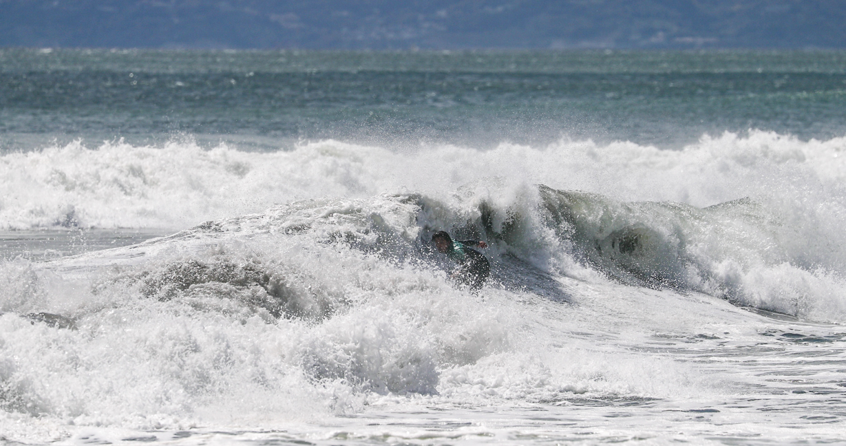 海に入り始めてからしばらくすると、オフショアが強まり、コンディションが悪化してきたかと思いきや、さらに1時間ちょっと経つ頃には若干風が弱まりはじめ、予想以上のグッドコンディションに変貌。