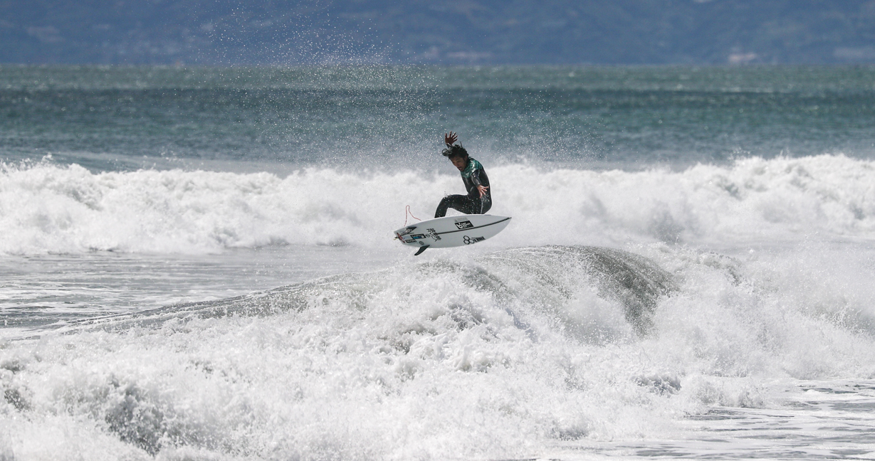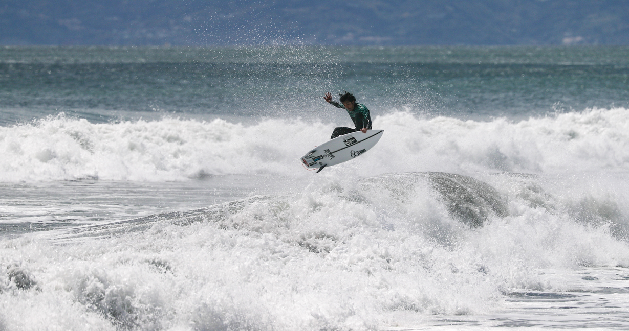 強めのオフショアですら味方につけ、高さのあるスラブエアを魅せるのは中浦JET章。