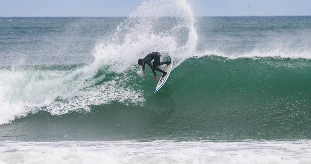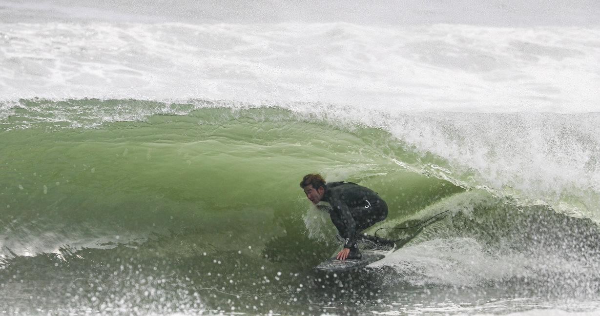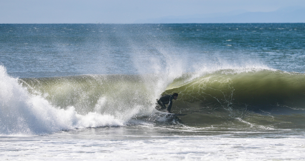 ビーチでカメラを構えていると、スタイリッシュなバックサイド・グラブレールでチューブに突っ込みまくる上手いサーファーを発見。