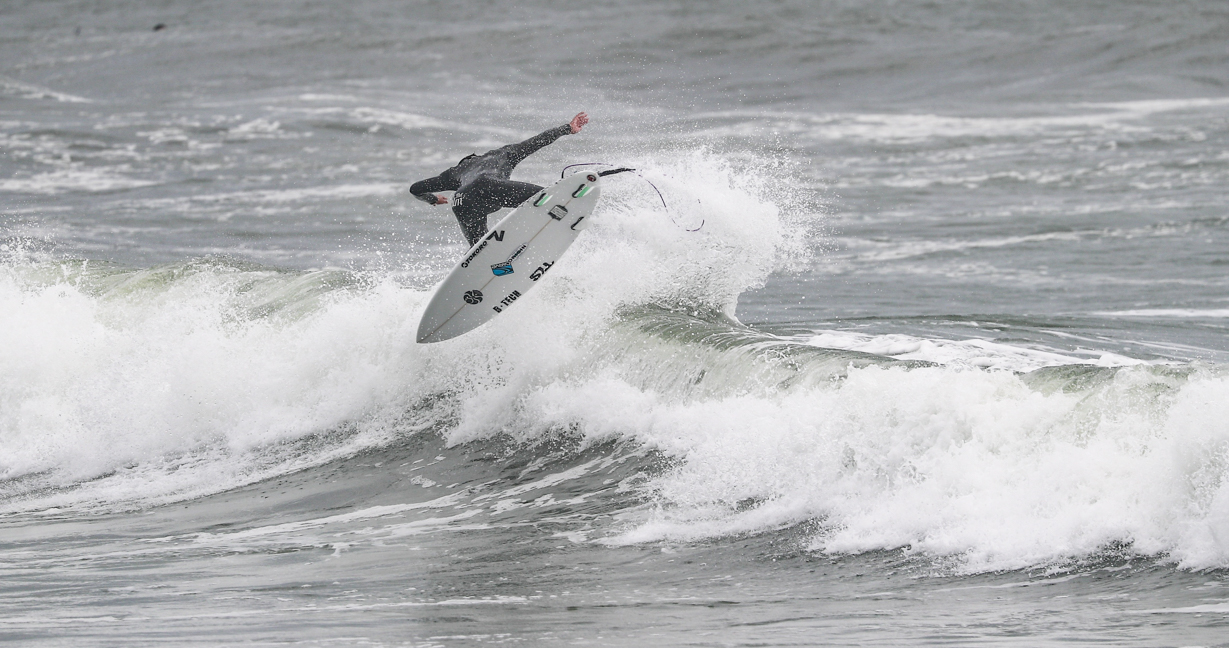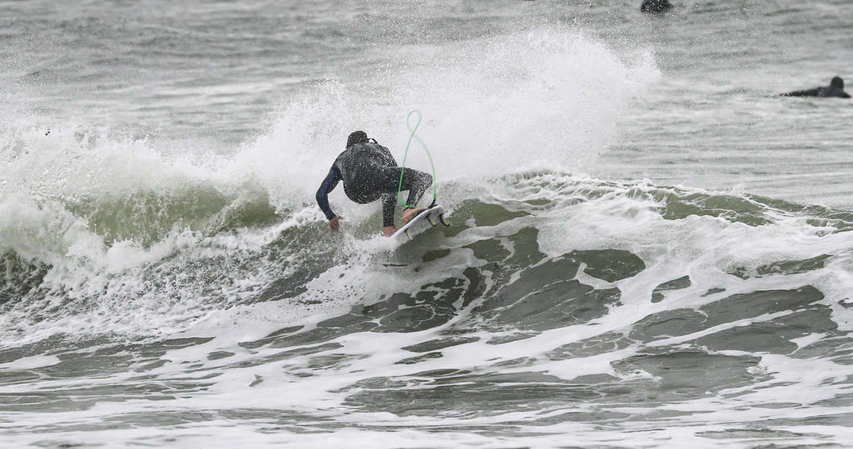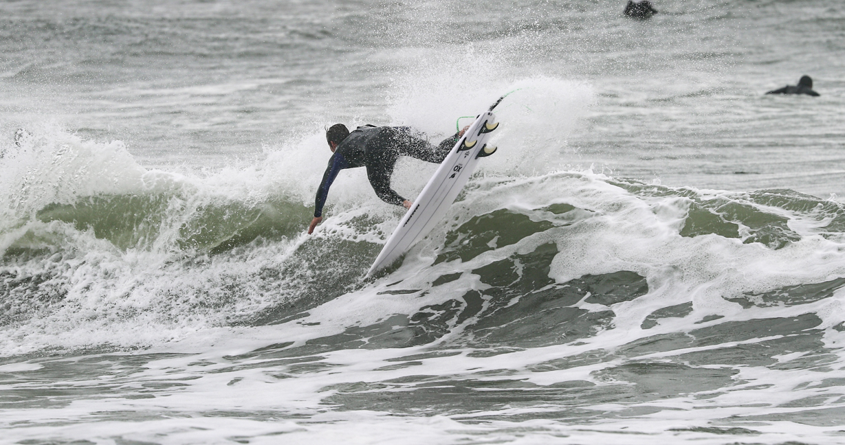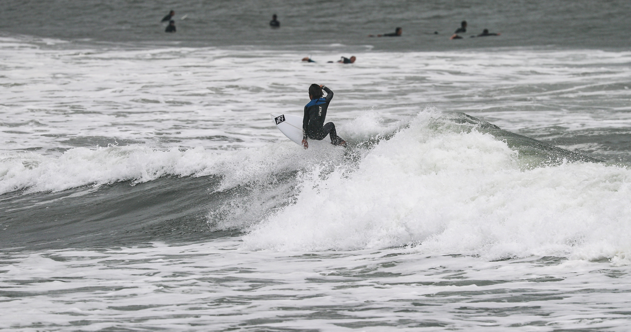 この日はあまりの水の冷たさに、さすがに2mmのジャーフルでは耐えきることができず、わずか1時間足らずで数本乗って海から上がってしまったKalani Davidだったが、本当に軽くリップしているような力の抜けた感じでサラリと難易度の高い技を決めてくるその世界レベルのサーフィンに圧倒されたことは言うまでもない。Kalani David.