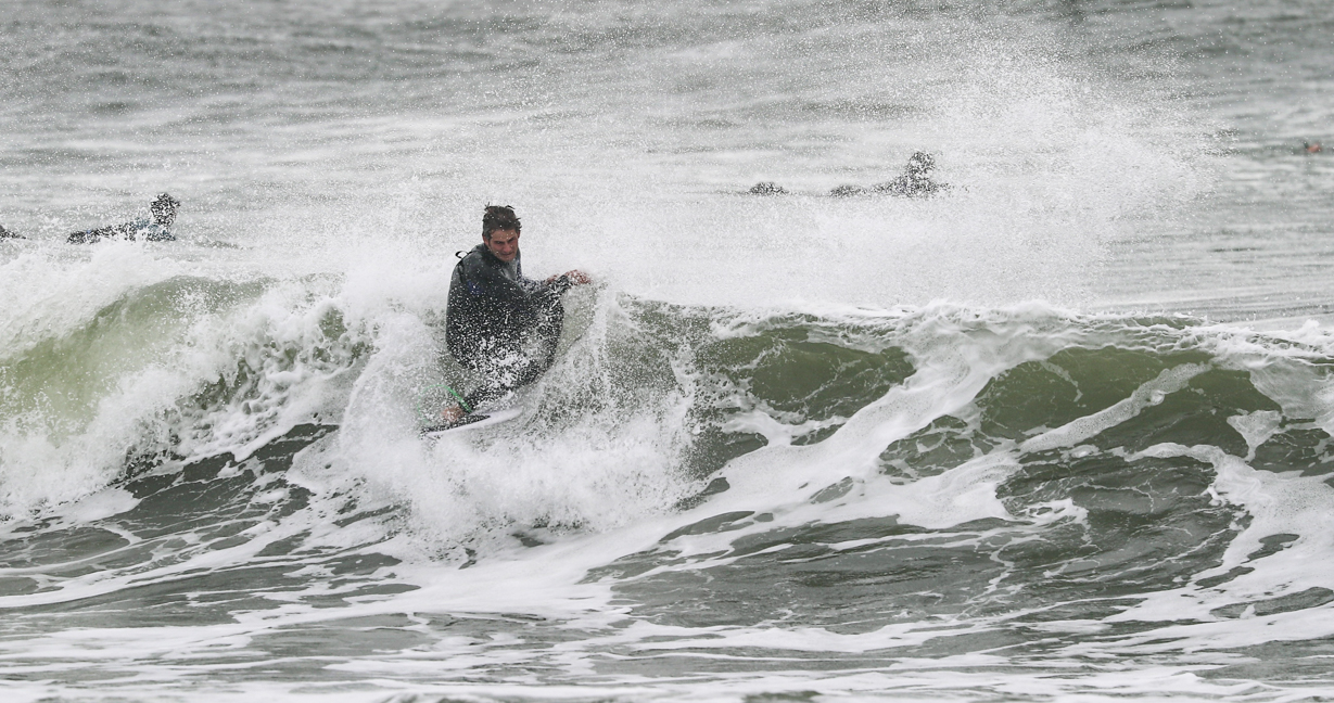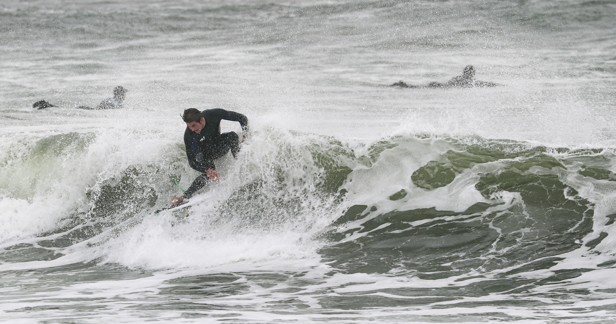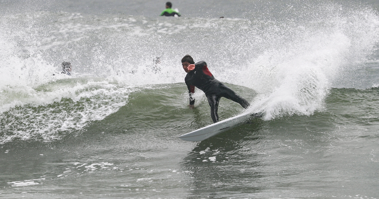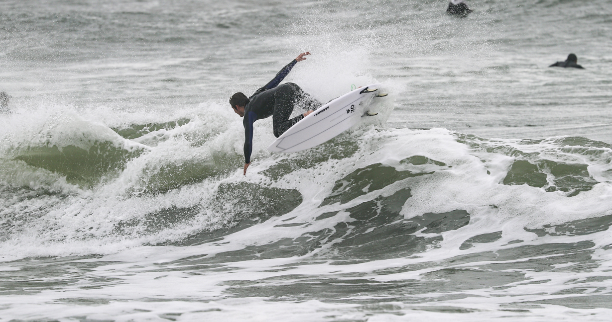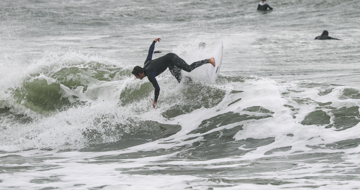 この日はあまりの水の冷たさに、さすがに2mmのジャーフルでは耐えきることができず、わずか1時間足らずで数本乗って海から上がってしまったKalani Davidだったが、本当に軽くリップしているような力の抜けた感じでサラリと難易度の高い技を決めてくるその世界レベルのサーフィンに圧倒されたことは言うまでもない。Kalani David.