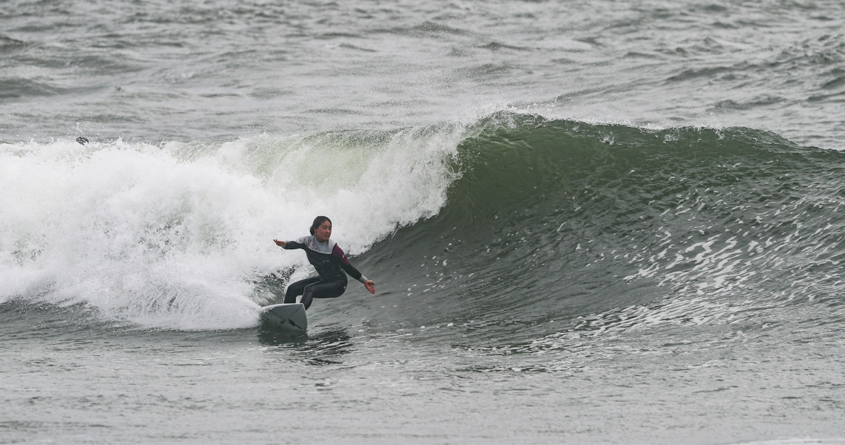 セッション後半になると、なんとまさかの超ラッキーか、オリンピック日本代表選手としても有力候補のひとりである川合美乃里がショーアップ!!オンショアが徐々に強まりコンディションが悪化してきている中でも思わず唸らされるような、上の写真をご覧頂ければ一目瞭然なダイナミックなリッピングを披露してくれた。今シーズンはCT入りを目指してQS転戦に全力を注ぐ川合美乃里の世界の舞台での快進撃に期待したい!!Go Minori!!! Go Japan!!!!!