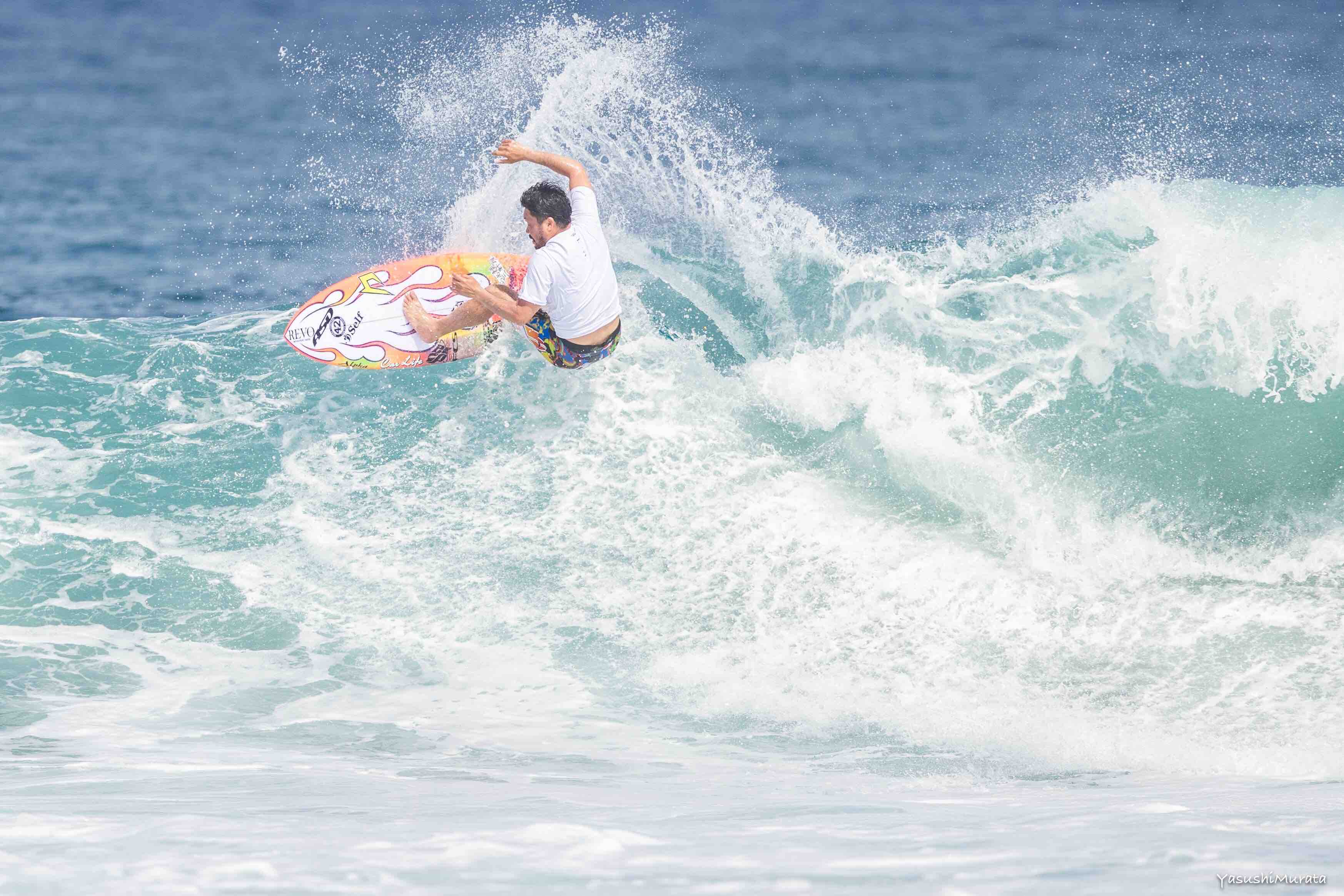 そんな丸山チアサを現地バリでアテンド兼コーチングするのは、歴代グランドチャンピオン浦山哲也プロ。選手としてコンテストシーンの最前線からは一歩退いても、一時代を築いたそのスピーディーで切れ味鋭いサーフスタイルは天下一品。Tetsuya Urayama.