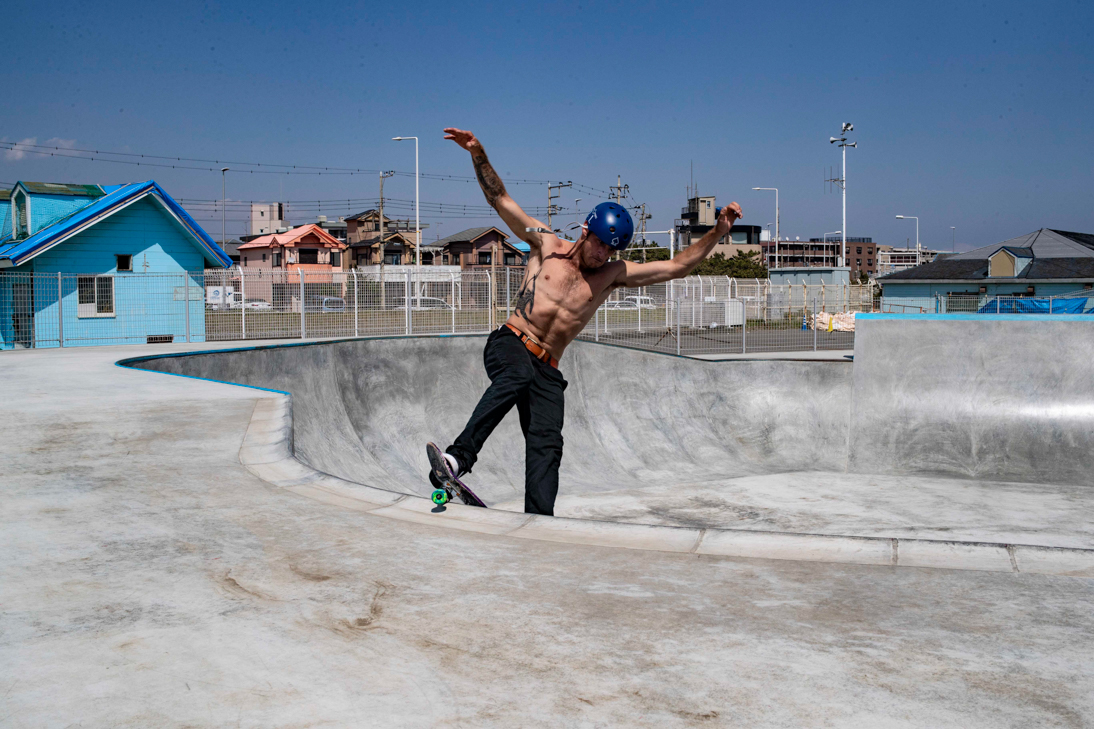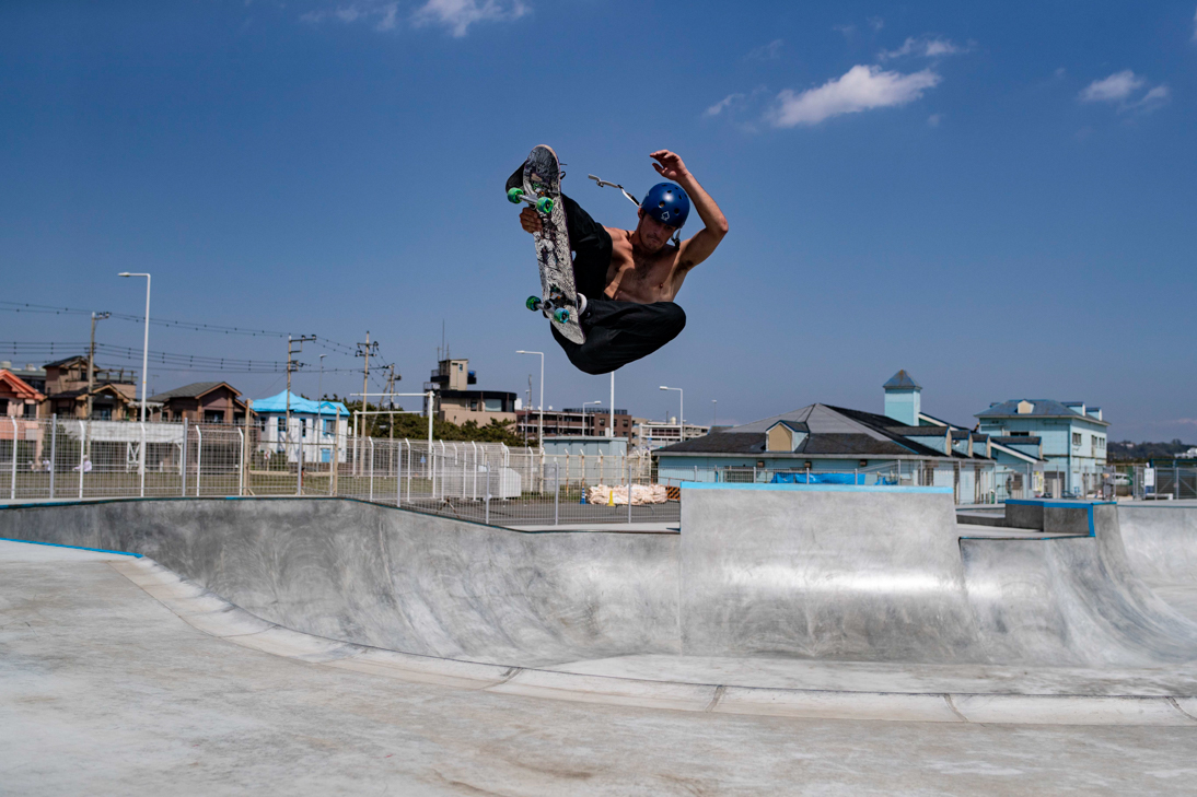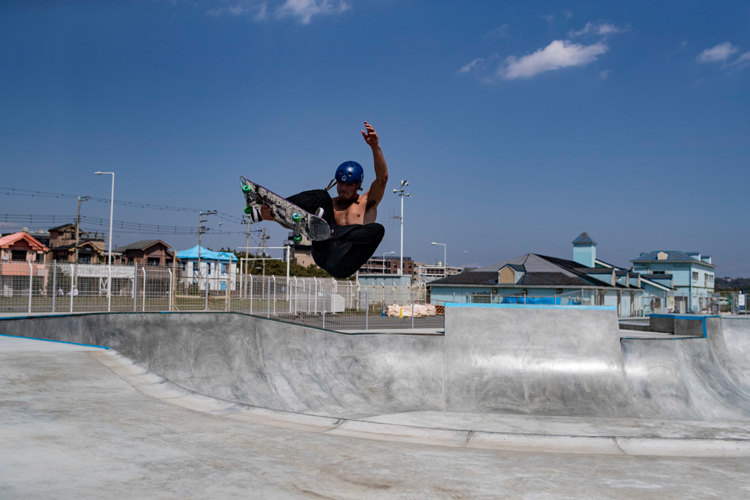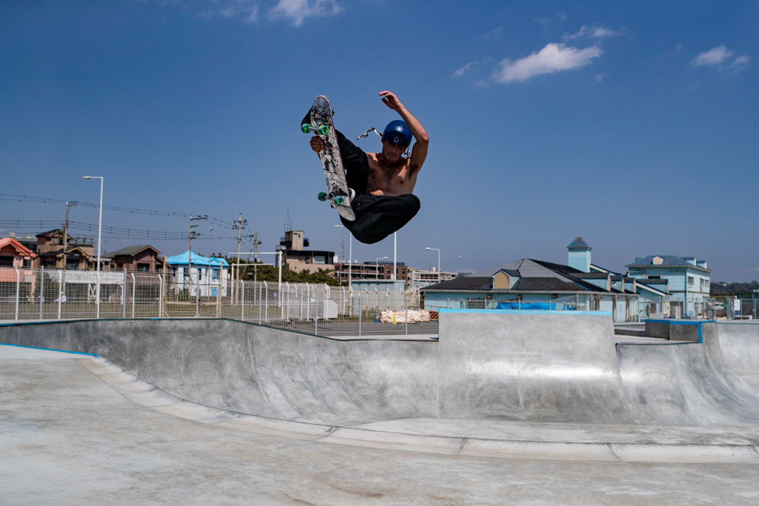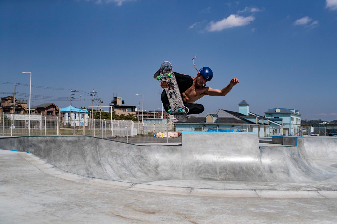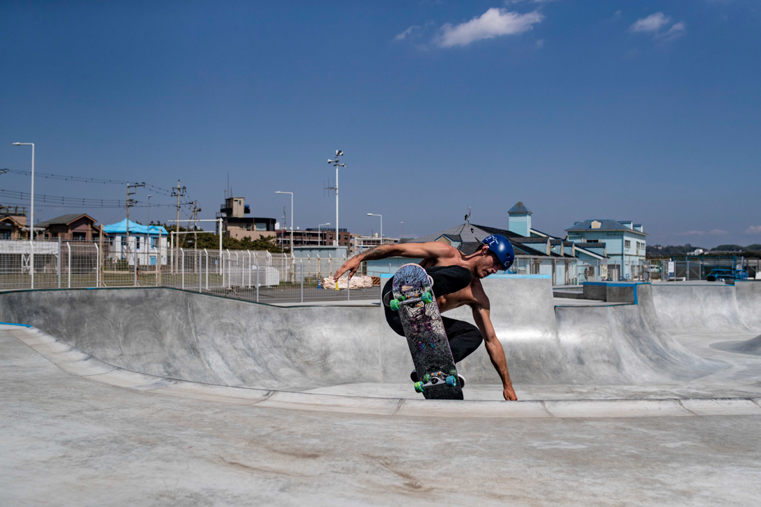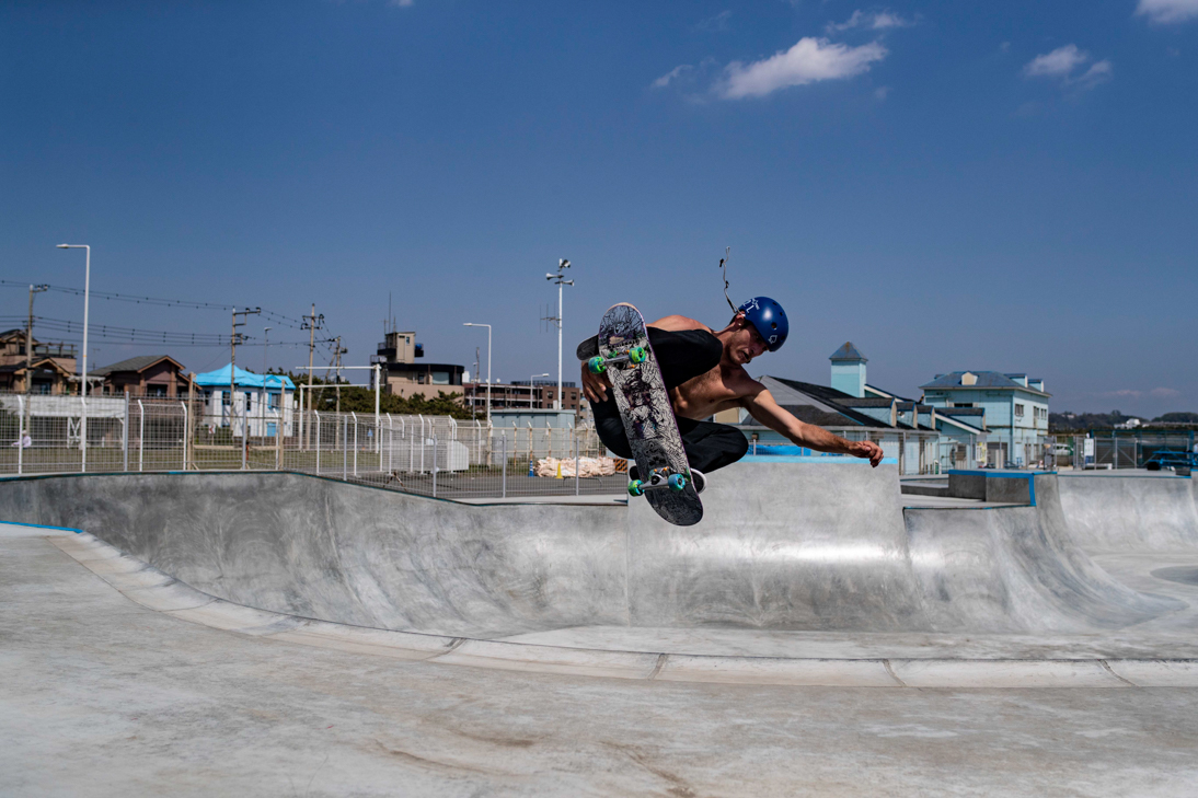 しかしながら、サーフィンとスケートボードのカルチャーが浸透する湘南ならではの、鵠沼にある鵠沼プールガーデンのスケートパークにて、Kalani Davidのスケートボード・セッションが決行された!
