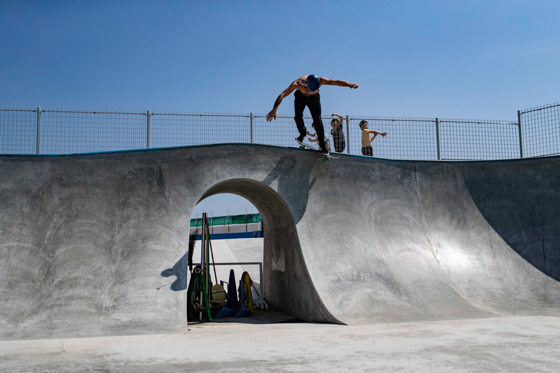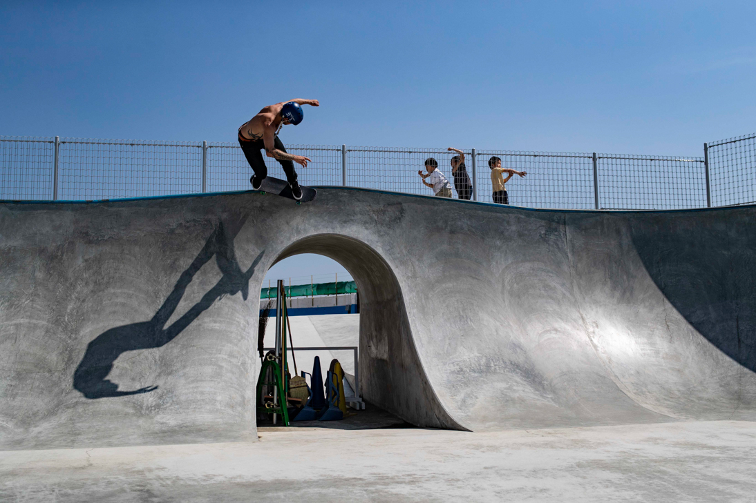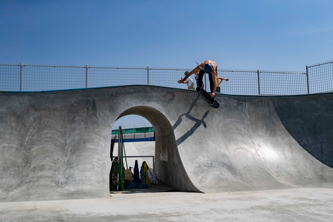 さらにこのコンクリートパークで、プールコーピングに並ぶハードコアなセクションであるトンネル越えセクションに狙いを定め、