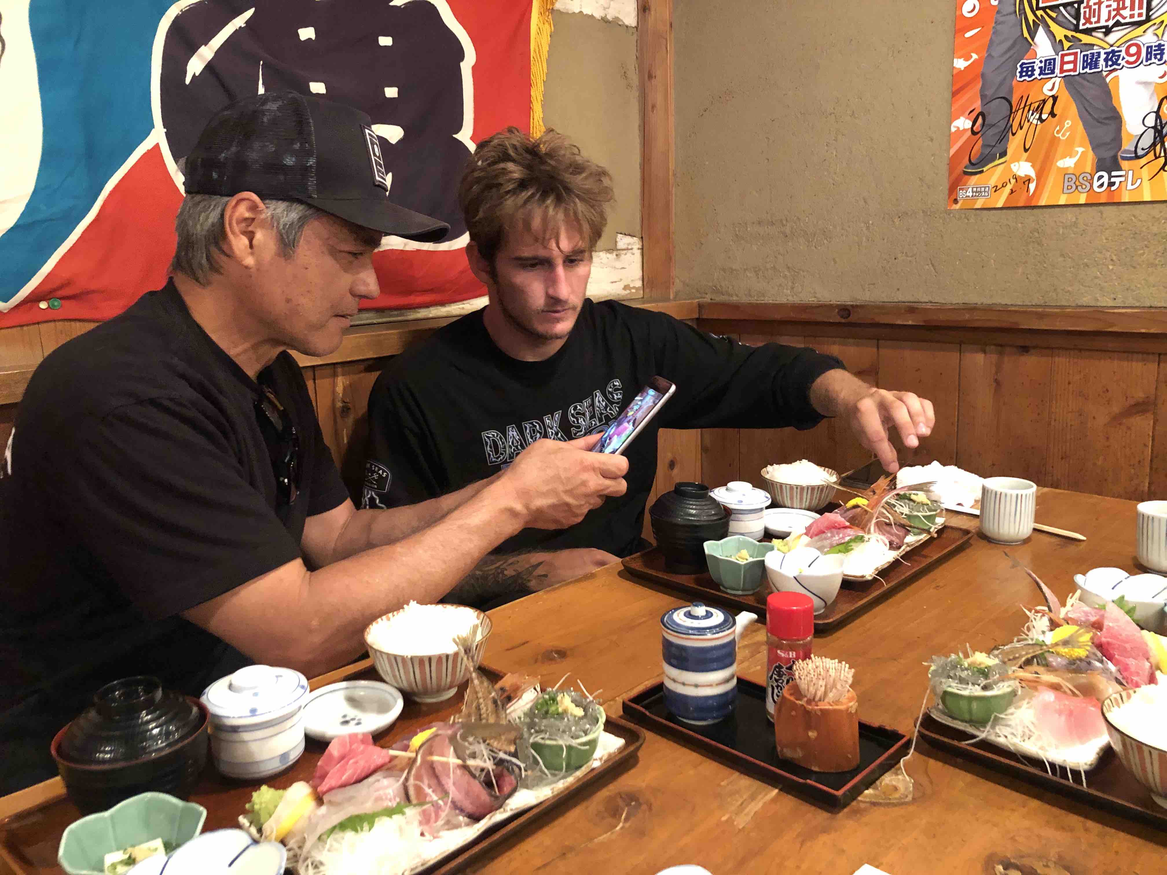 気がつくとお昼をとっくに過ぎており、お腹が空いたということで湘南某所の美味しい料理やでEric Arakawaと共に高級刺身定食に舌鼓を打つ。