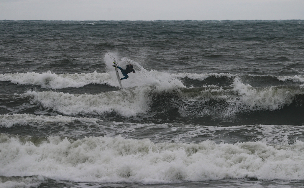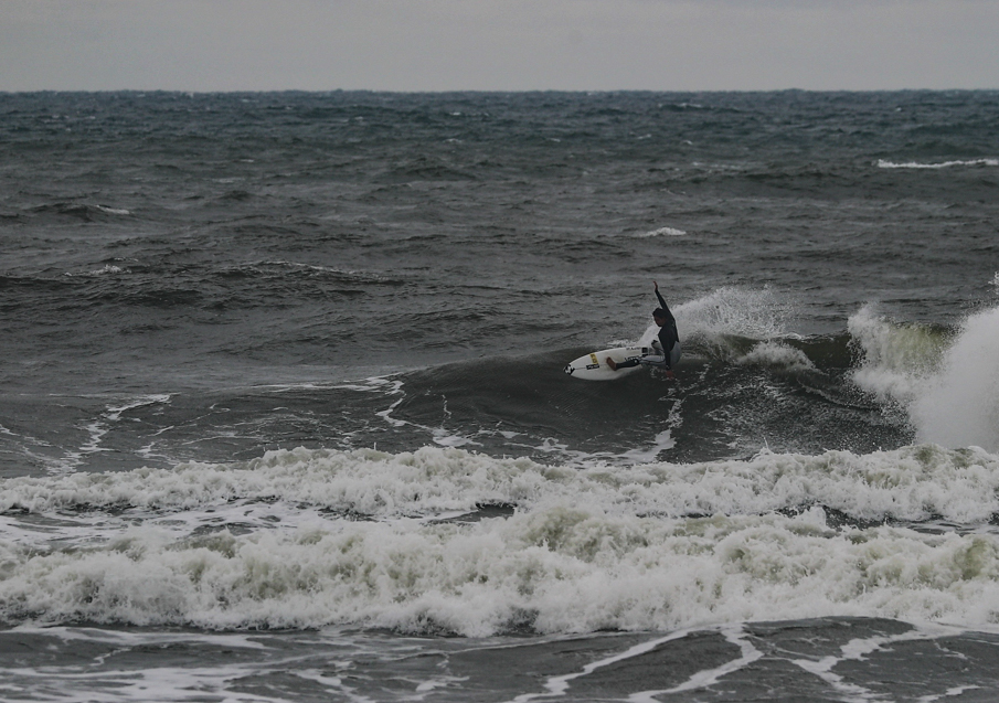 テンポよく波を掴んではスタイリッシュかつエキサイティングなライディングを披露したのは地元千葉出身の注目の若手プロサーファー古川海夕。Miyu Furukawa.