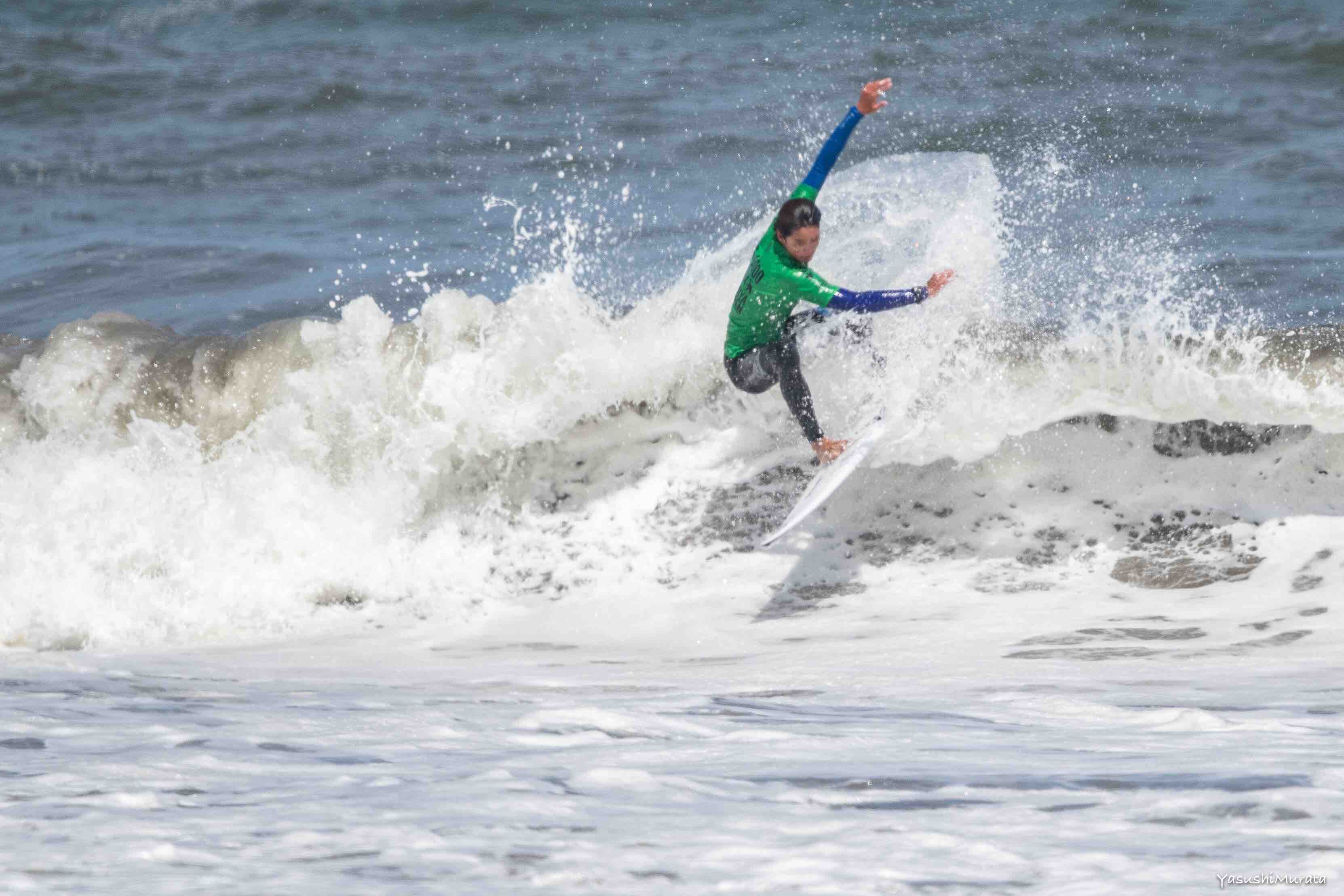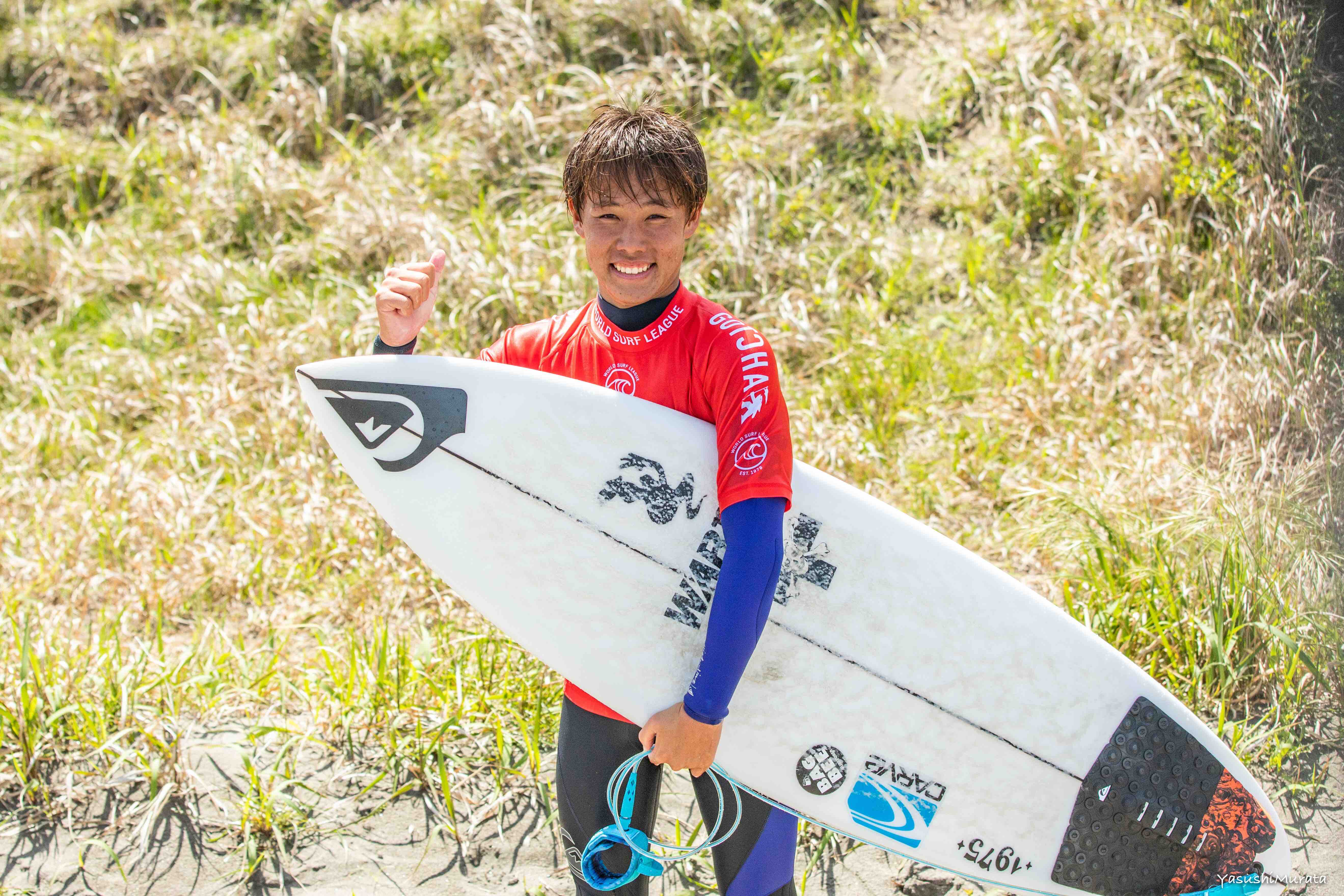 MENS QS6000とWOMENS QS1000が同時開催される本ビッグイベントの初日となる4/28(日)は日本人選手による本戦への出場権2名分を賭けたジャパントライアルが行なわれ、ファイナルでダントツのサーフィンを魅せて9.00ptライドと6.25ptをマークしトータルスコア15.25ptを叩き出した伊東李案琉が優勝!