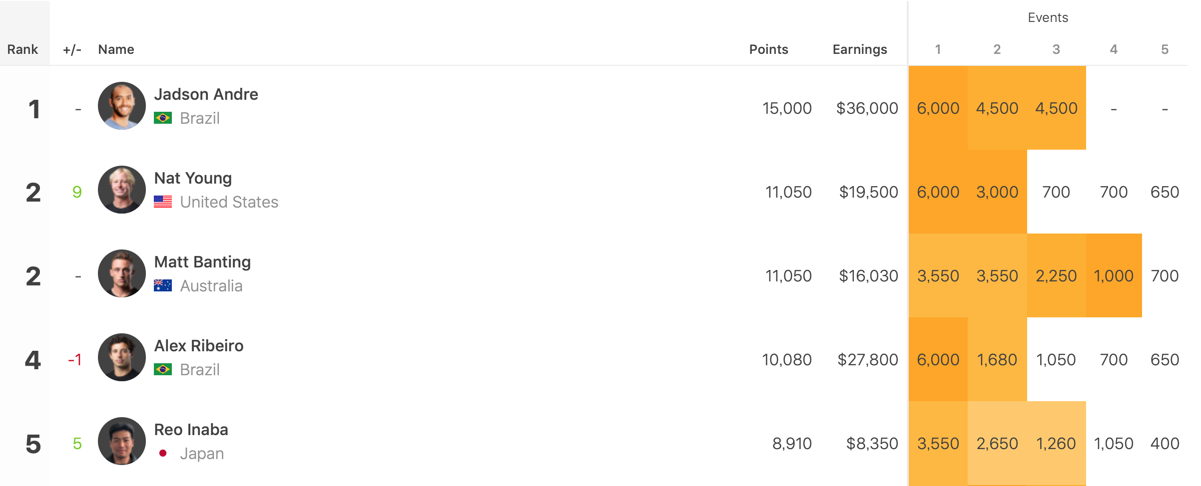 この結果によって稲葉玲王はQSランキング5位の座をキープ。